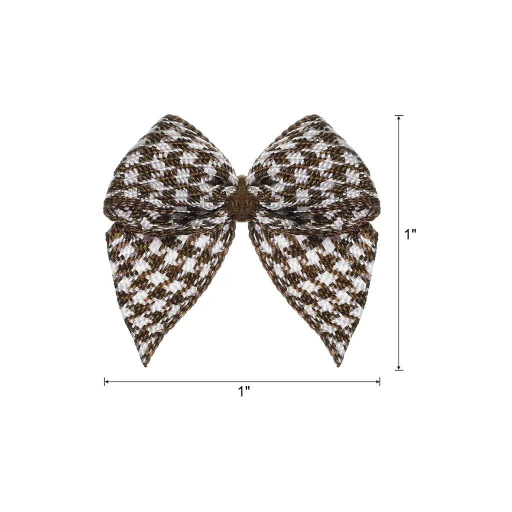 What is this?These ribbon bows are mostly used in the hemming and decoration of leather goods, bags, sleeping bags, tents, and clothing. Because polyester ribbon is soft, they are mostly used for the hemming of softer fabrics.What will I get?The Mini Ribbon Bow, we provide here, is in size of:Material: PolyesterColor: BrownDimension: 1 x 1 inch (W*H)In the package of: 100 x Mini Ribbon BowsAre there any advantages of the product?Polyester material, fine texture, high washing fastness, no fading, smooth and wrinkle-resistant, flexible to the touch.The product is bright in color, fashionable and new in design, and can be used on many occasions. It is suitable for hair accessories, clothing, Christmas gifts, baking decorations, gift box packaging, hotel decorations, wedding decorations, flower packaging, birthday arrangements, etc.How to use it?1. Choose the color of the Mini Ribbon Bow that matches your project or gift wrapping paper. 2. Use twist ties (not included here) or or glue to secure the mini ribbon bows to desired surfaces such as gift boxes, cards, or crafts. 3. Adjust the position of the bow if necessary to get the desired look.What should I notice?Manual measurement, please allow +/-3mm errors in size.Please note that there may be a slight color difference between the picture and the actual product, and the color is subject to the actual product received.