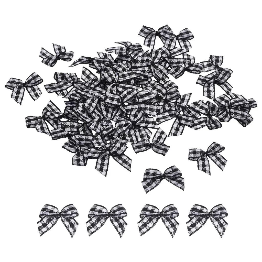 What is this?These ribbon bows are mostly used in the hemming and decoration of leather goods, bags, sleeping bags, tents, and clothing. Because polyester ribbon is soft, they are mostly used for the hemming of softer fabrics.What will I get?The Mini Ribbon Bow, we provide here, is in size of:Material: PolyesterColor: Black and WhiteDimension: 1 x 1 inch (W*H)In the package of: 100 x Mini Ribbon BowsAre there any advantages of the product?Polyester material, fine texture, high washing fastness, no fading, smooth and wrinkle-resistant, flexible to the touch.The product is bright in color, fashionable and new in design, and can be used on many occasions. It is suitable for hair accessories, clothing, Christmas gifts, baking decorations, gift box packaging, hotel decorations, wedding decorations, flower packaging, birthday arrangements, etc.How to use it?1. Choose the color of the Mini Ribbon Bow that matches your project or gift wrapping paper. 2. Use twist ties (not included here) or or glue to secure the mini ribbon bows to desired surfaces such as gift boxes, cards, or crafts. 3. Adjust the position of the bow if necessary to get the desired look.What should I notice?Manual measurement, please allow +/-3mm errors in size.Please note that there may be a slight color difference between the picture and the actual product, and the color is subject to the actual product received.