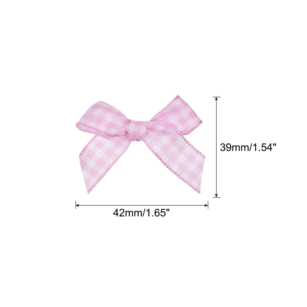 100pcs Mini Gingham Ribbon Bow Checkered Satin Ribbon Flower Bows - Light Green