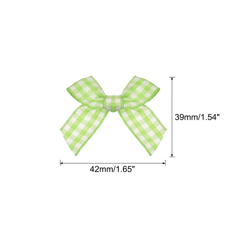 100pcs Mini Gingham Ribbon Bow Checkered Satin Ribbon Flower Bows - Pink