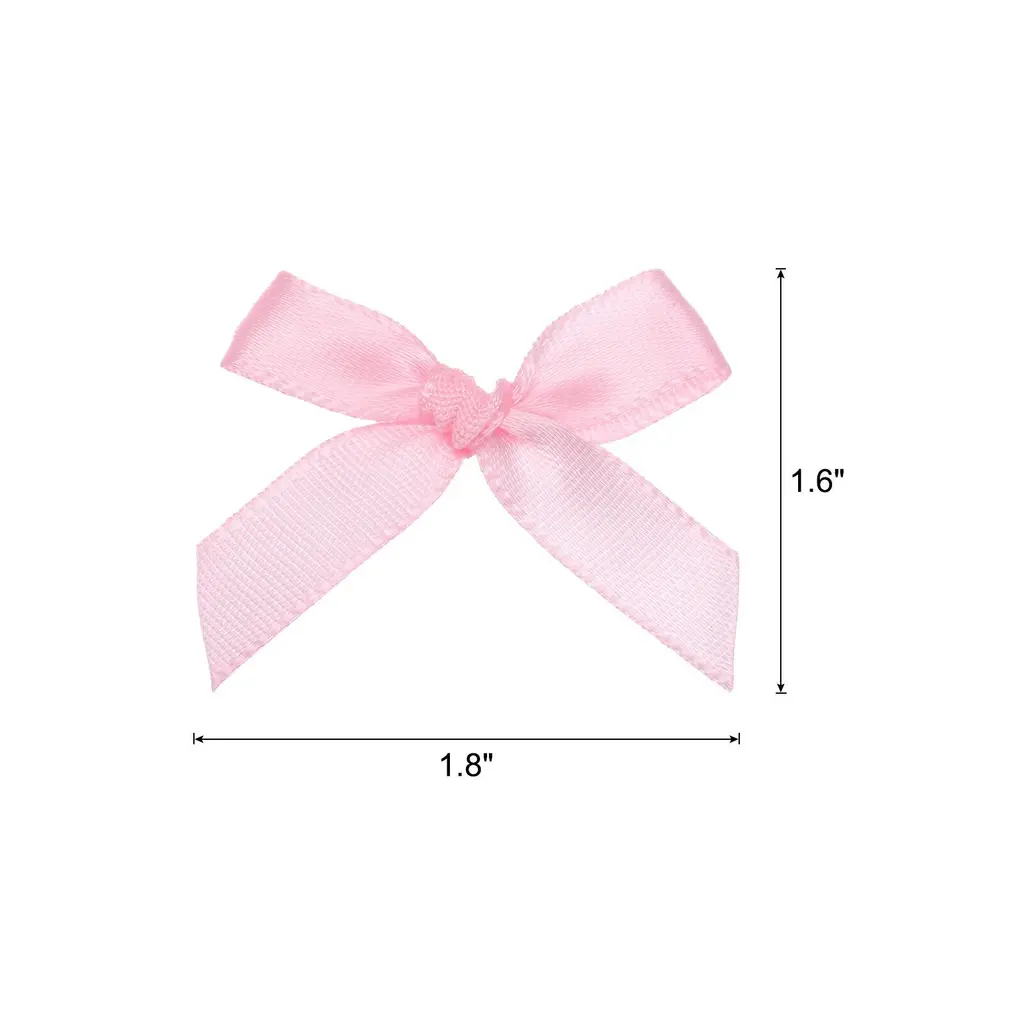 What is this?These ribbon bows are mostly used in the hemming and decoration of leather goods, bags, sleeping bags, tents, and clothing. Because polyester ribbon is soft, they are mostly used for the hemming of softer fabrics.What will I get?The Mini Ribbon Bow, we provide here, is in size of:Material: PolyesterColor: Black, Red, White, Pink, Dark Blue, Purple, Gray, Light Green, Bright Yellow, Rose Red,Light Blue, Light Yellow, Han Pink, Light Grey, Dark Red, Dark Coffee, Champagne, Deep Dark Green, Green, Wine Red, Beige.Dimension: 1.8x1.6 inchIn the package of: 100 x Mini Ribbon BowsAre there any advantages of the product?1. Premium polyester material, fine texture, high washing fastness, no fading, smooth and wrinkle-resistant, flexible to the touch.2. The product is bright in color, fashionable and new in design, and can be used on many occasions. It is suitable for hair accessories, clothing, Christmas gifts, baking decorations, gift box packaging, hotel decorations, wedding decorations, flower packaging, birthday arrangements, etc.How to use it?1. Choose the color of the Mini Ribbon Bow that matches your project or gift wrapping paper. 2. Use twist ties (not included here) or or glue to secure the mini ribbon bows to desired surfaces such as gift boxes, cards, or crafts. 3. Adjust the position of the bow if necessary to get the desired look.What should I notice?Manual measurement, please allow slight errors in size.Please note that there may be a slight color difference between the picture and the actual product, and the color is subject to the actual product received.