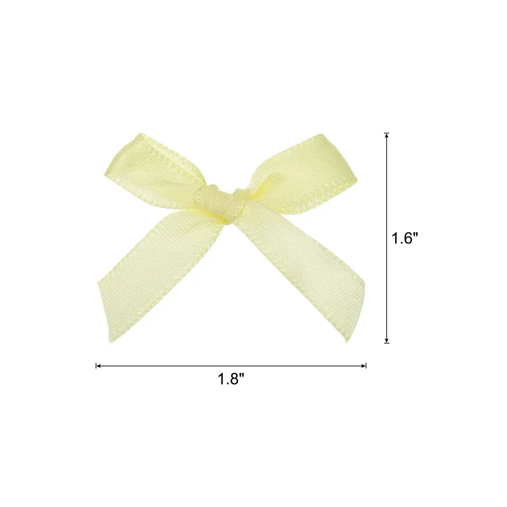 What is this?These ribbon bows are mostly used in the hemming and decoration of leather goods, bags, sleeping bags, tents, and clothing. Because polyester ribbon is soft, they are mostly used for the hemming of softer fabrics.What will I get?The Mini Ribbon Bow, we provide here, is in size of:Material: PolyesterColor: Black, Red, White, Pink, Dark Blue, Purple, Gray, Light Green, Bright Yellow, Rose Red,Light Blue, Light Yellow, Han Pink, Light Grey, Dark Red, Dark Coffee, Champagne, Deep Dark Green, Green, Wine Red, Beige.Dimension: 1.8x1.6 inchIn the package of: 100 x Mini Ribbon BowsAre there any advantages of the product?1. Premium polyester material, fine texture, high washing fastness, no fading, smooth and wrinkle-resistant, flexible to the touch.2. The product is bright in color, fashionable and new in design, and can be used on many occasions. It is suitable for hair accessories, clothing, Christmas gifts, baking decorations, gift box packaging, hotel decorations, wedding decorations, flower packaging, birthday arrangements, etc.How to use it?1. Choose the color of the Mini Ribbon Bow that matches your project or gift wrapping paper. 2. Use twist ties (not included here) or or glue to secure the mini ribbon bows to desired surfaces such as gift boxes, cards, or crafts. 3. Adjust the position of the bow if necessary to get the desired look.What should I notice?Manual measurement, please allow slight errors in size.Please note that there may be a slight color difference between the picture and the actual product, and the color is subject to the actual product received.