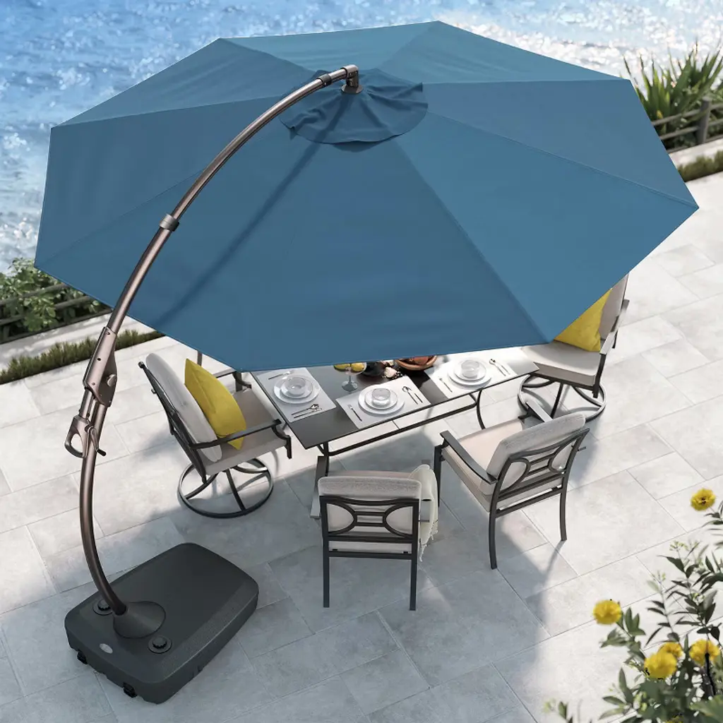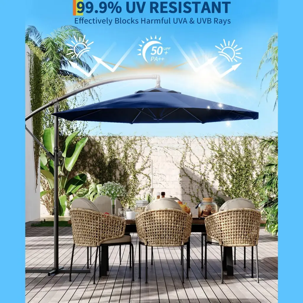 Crafted from high-density 180G polyester, the canopy effectively blocks up to 99% of harmful UV rays and is water-resistant to withstand light rain. The fade-resistant fabric ensures that the vibrant color lasts through many seasons, providing dependable sun safety year after year. Ideal for patios, decks, poolside areas, and commercial spaces, this umbrella easily fits most standard cantilever bases. Its classic style blends seamlessly with any outdoor décor, making it a versatile and stylish addition to your space.