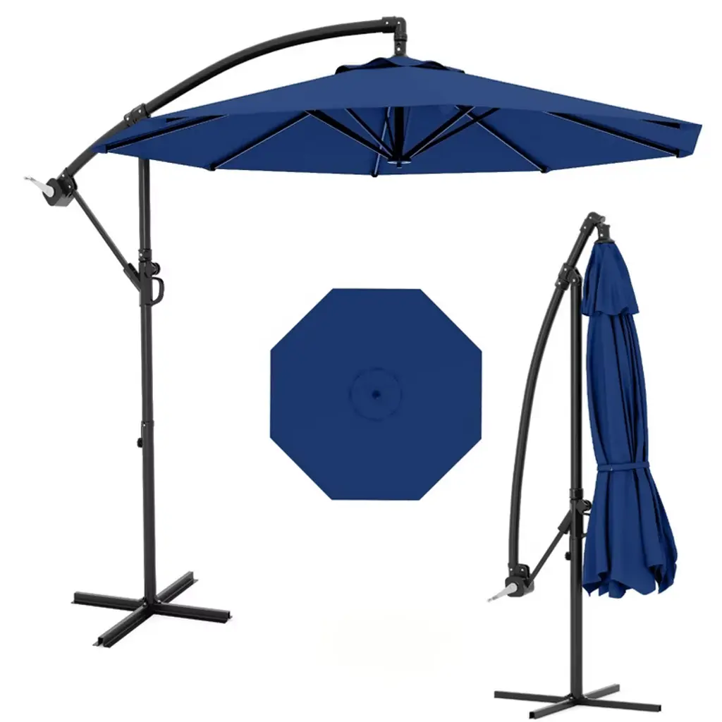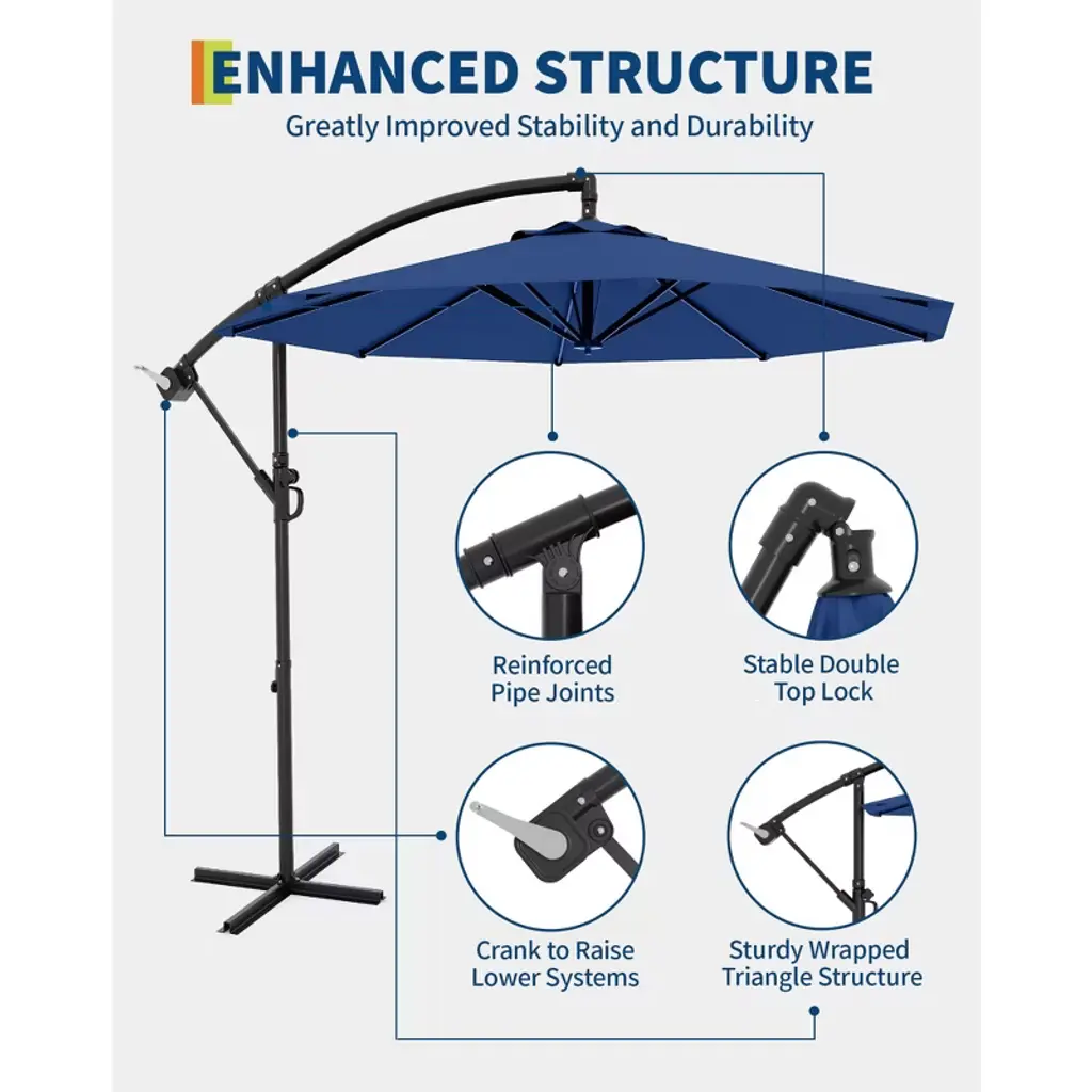 10ft Cantilever Patio Umbrella, Hanging Umbrella With Cross Base, Crank Lift & Tilt For Maximum Shade Coverage Navy
