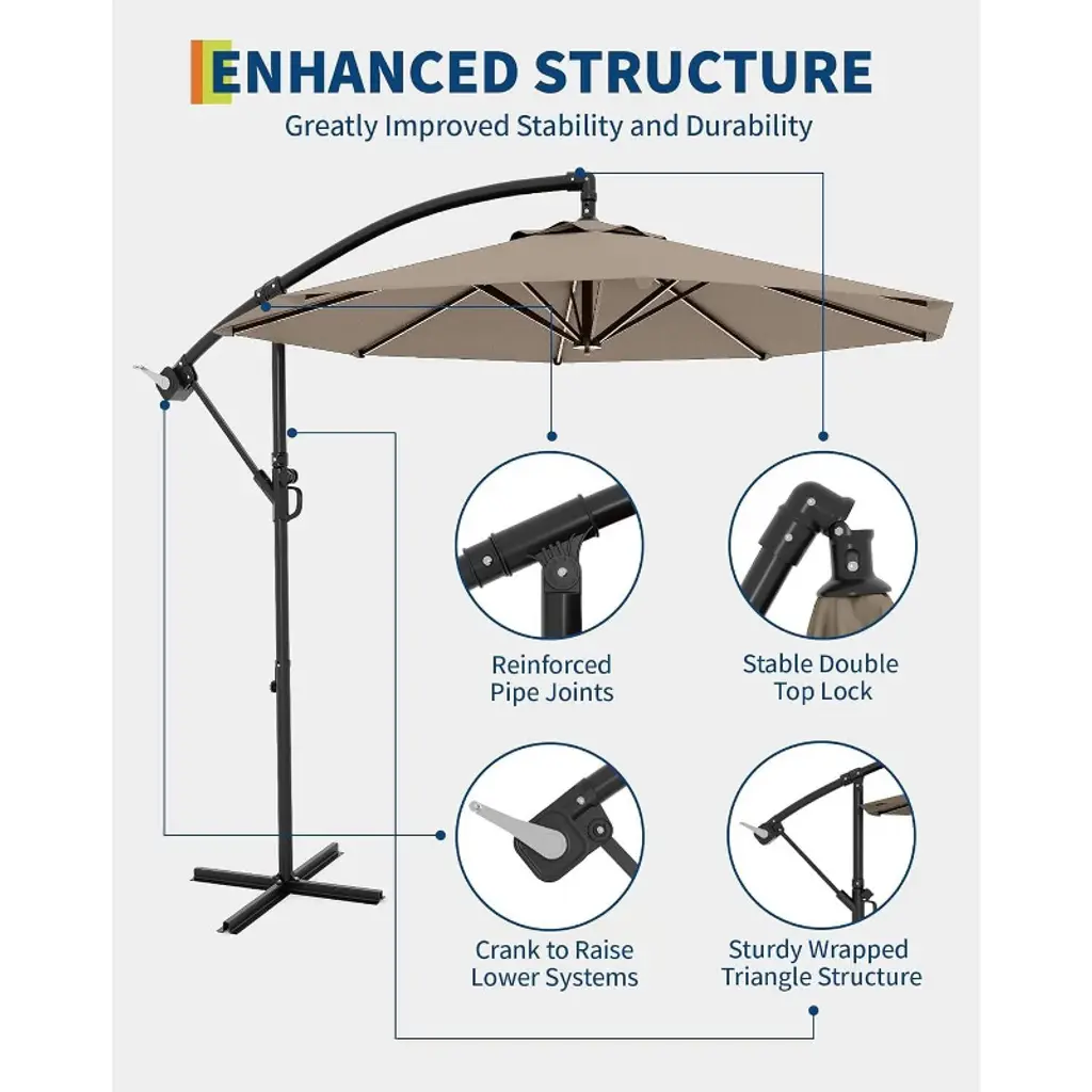 10ft Cantilever Umbrella With Cross Base – Outdoor Offset Patio Umbrella With Infinite Tilt & Crank Lift, Fade-resistant Canopy