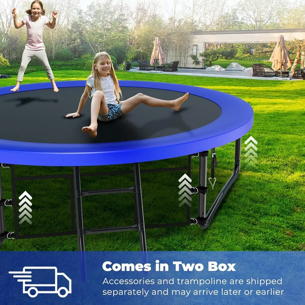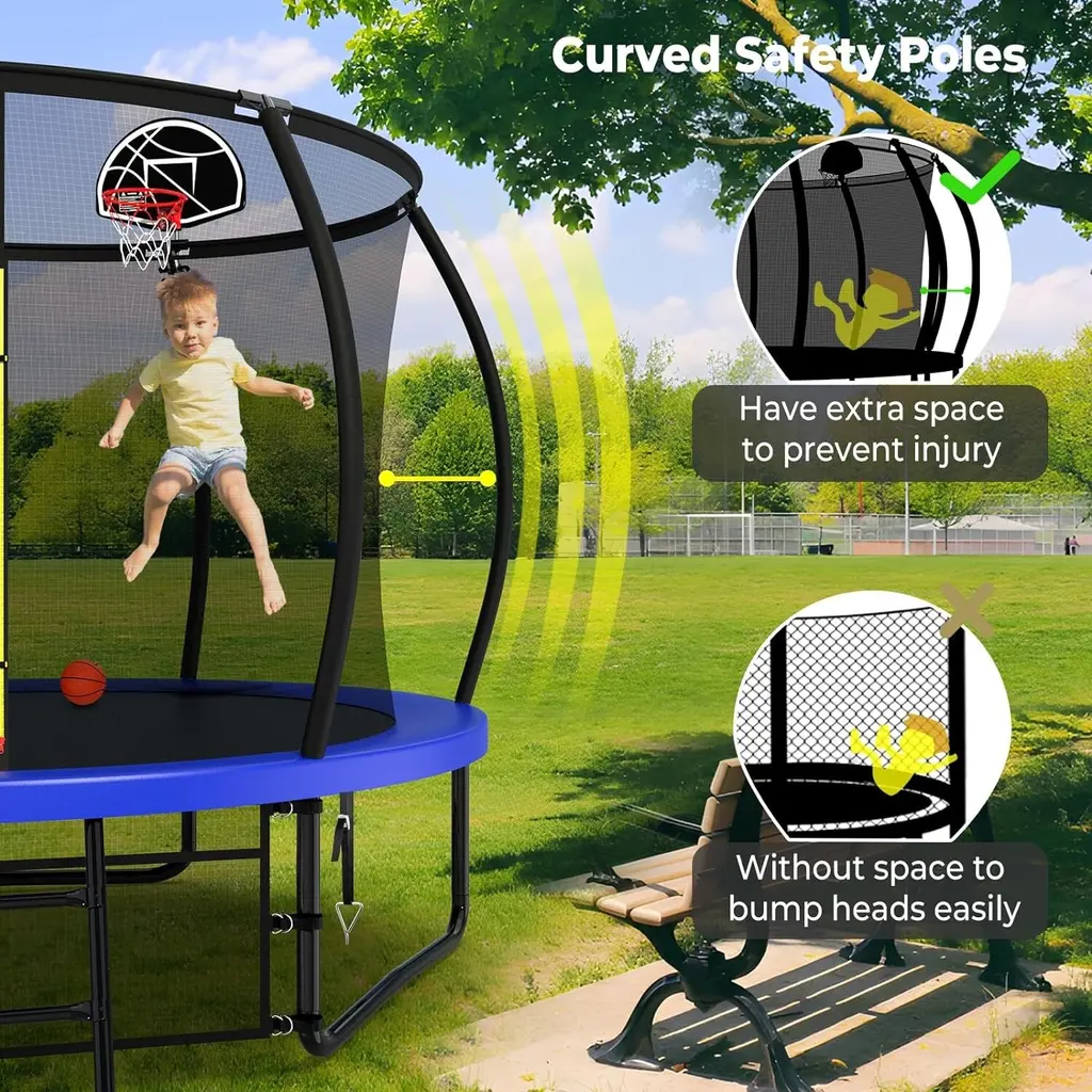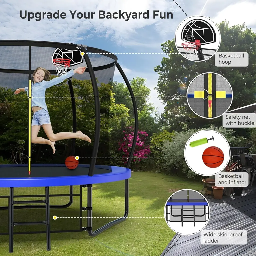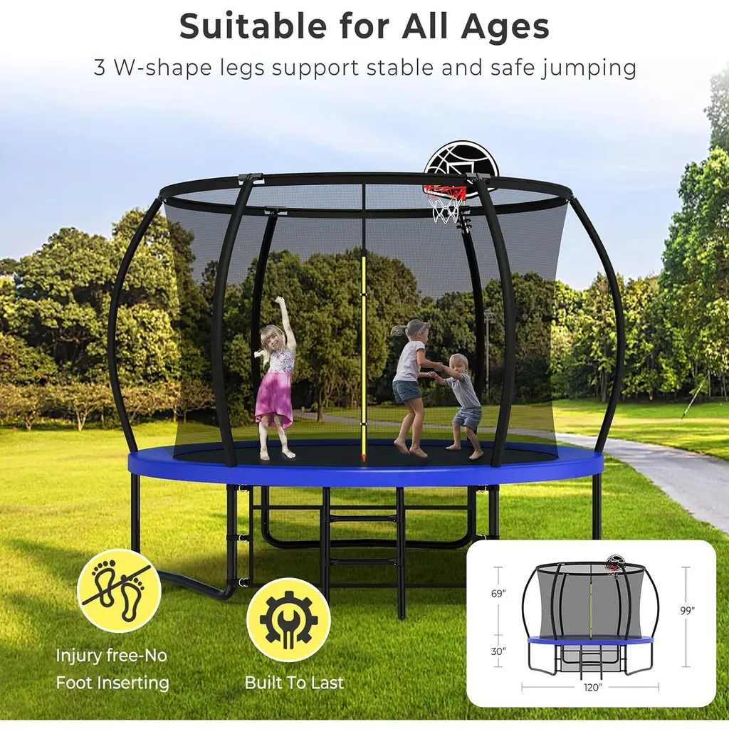 10ft/12ft Upgrade Outdoor Trampoline For Kids And Adults, Pumpkin Trampolines With Curved Poles - 10ft - Blue
