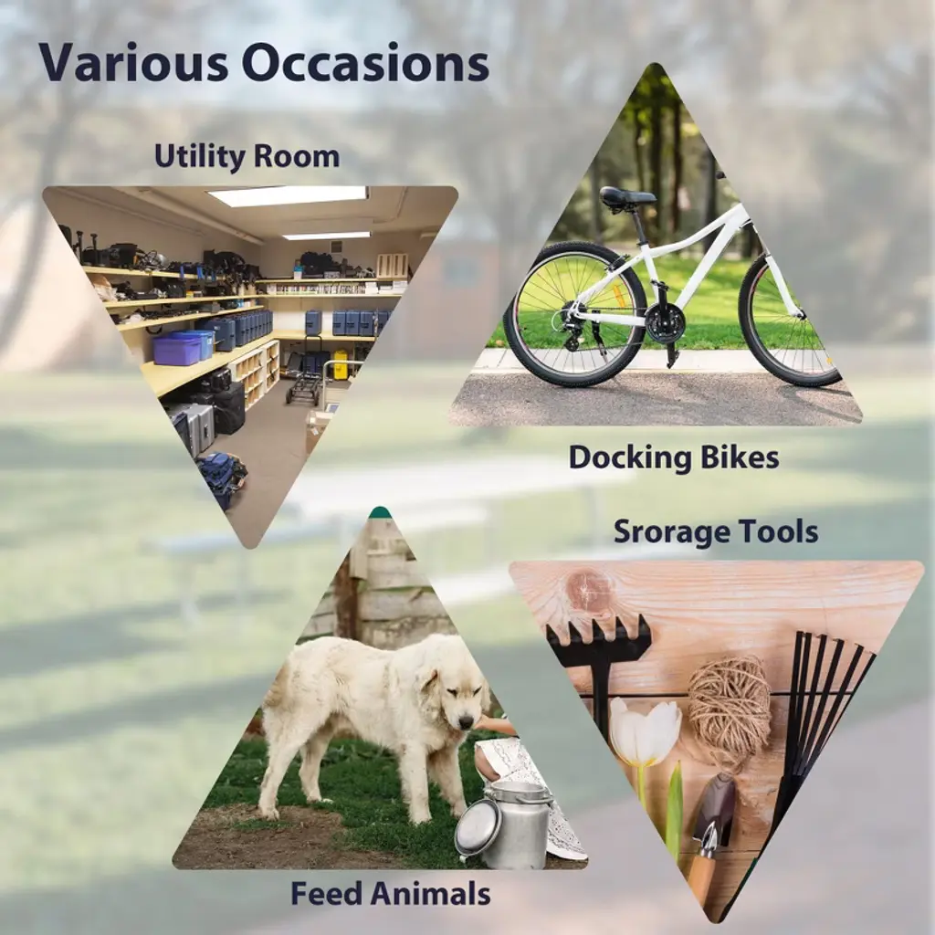 This spacious 113.7" x 117.68" x 79.21" metal shed offers a sleek, modern solution for outdoor storage. Crafted from high-quality metal with a reinforced frame, its durable construction withstands all weather conditions to protect your belongings. Featuring a sloped roof for efficient water drainage and four vents for optimal airflow, this shed prevents moisture buildup. Secure lockable doors and corner guards provide added safety and peace of mind. Perfect for storing lawn equipment, garden tools, or seasonal items, it helps you create a clean, organized backyard.