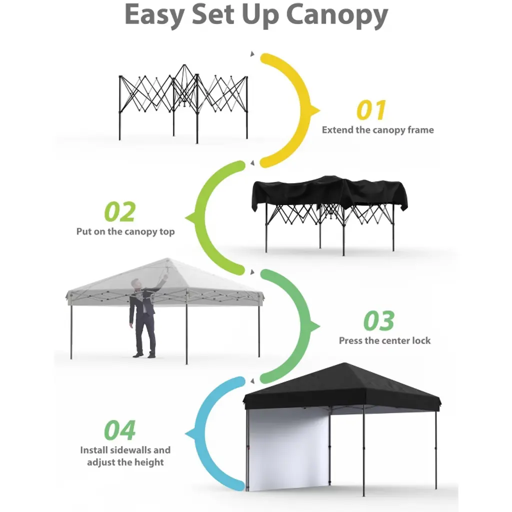 10x10 Ft Heavy Duty Pop Up Canopy Tent With 1 Removable Mesh Sidewalls, One Person Setup Commercial Shelter For Events, Parties, Camping, Black