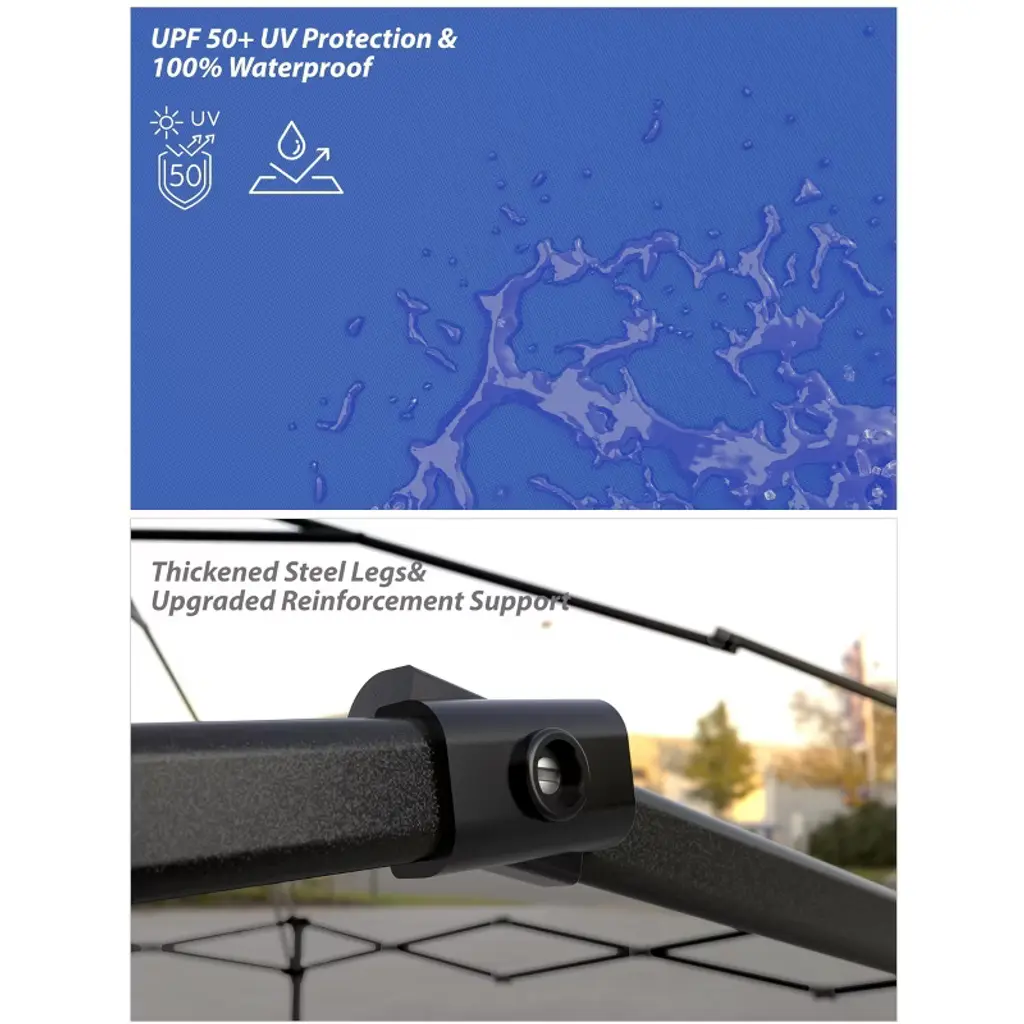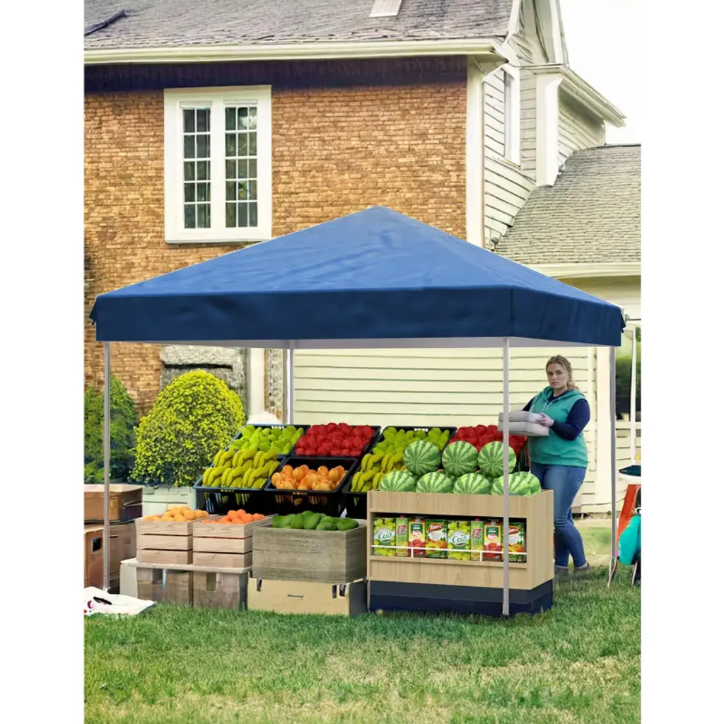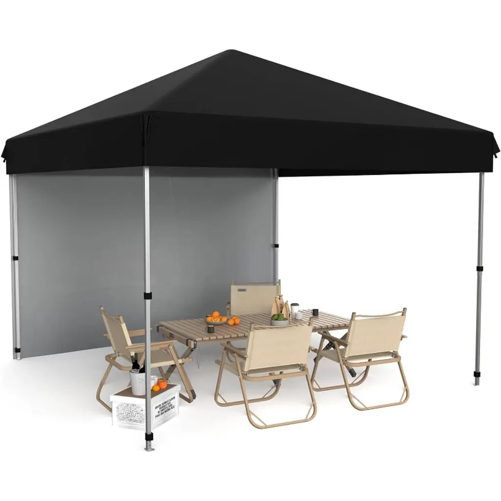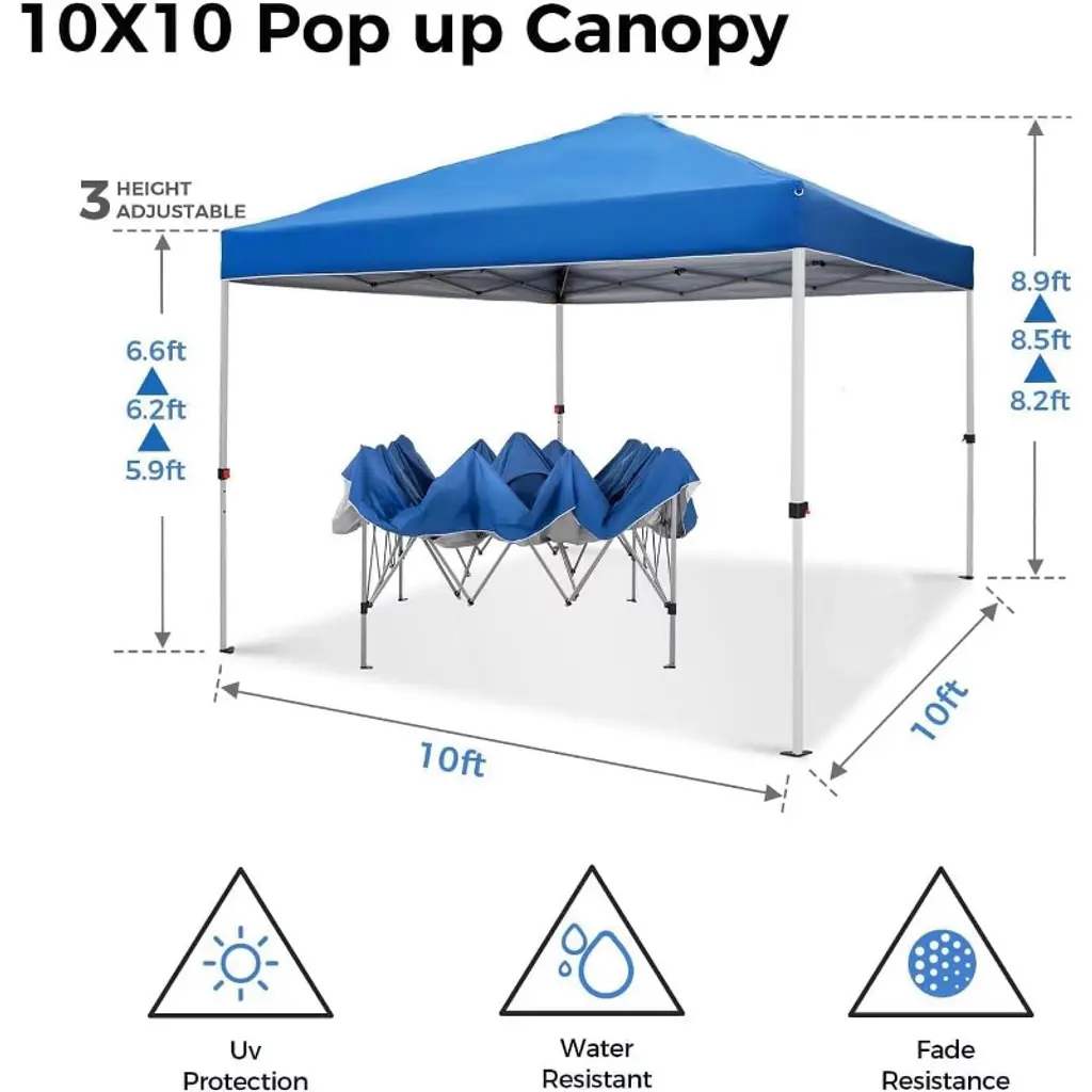Product Name: Pop Up Canopy TentProduct Dimensions:Item Package Dimensions L x W x H(in.): 48.43 x 8.27 x 9.06Item Dimensions L x W x H(in.): 120 x 120 x 72Product advantages:1.Durable & Sturdy Design: This pop-up canopy features a reinforced steel frame with industrial-grade rust-proof coating, ensuring long-term outdoor use without deformation or fading. The thickened canopy fabric effectively blocks sunlight and rain, making it a reliable choice for markets, camping, and outdoor activities.2.Airflow & Climate Control: Our pop-up canopy features dual-layer removable mesh panels that promote excellent cross ventilation while maintaining privacy. The silver-coated canopy fabric reflects heat effectively, creating a noticeably cooler shaded area that stays comfortable even on hot summer days.3.Quick & Easy Setup: With a unique one-touch deployment system, this pop-up canopy can be set up solo in under 10 minutes. The included wheeled carry bag makes transportation and storage of all accessories effortless.4.Versatile for Multiple Uses: From weekend market stalls to backyard parties, this pop-up canopy’s spacious coverage meets various needs. The customizable removable sidewalls allow flexible adjustments for different occasions.5.Complete Accessory Kit: Each pop-up canopy includes 8 ground stakes, 4 sandbags, and spare parts to ensure stability on any terrain. The well-designed drainage system effectively prevents rainwater pooling.