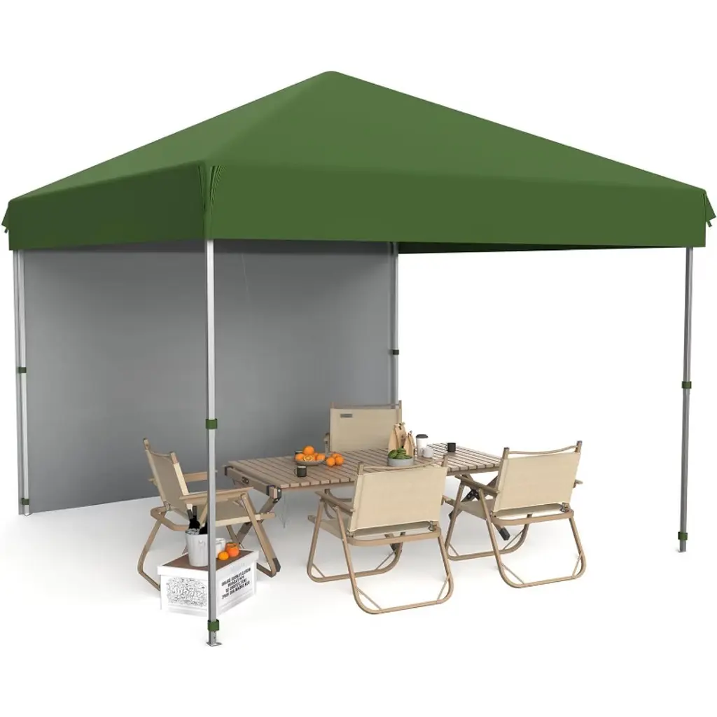 10x10 Ft Heavy Duty Pop Up Canopy Tent With 1 Removable Mesh Sidewalls, One Person Setup Commercial Shelter For Events, Parties, Camping, Green
