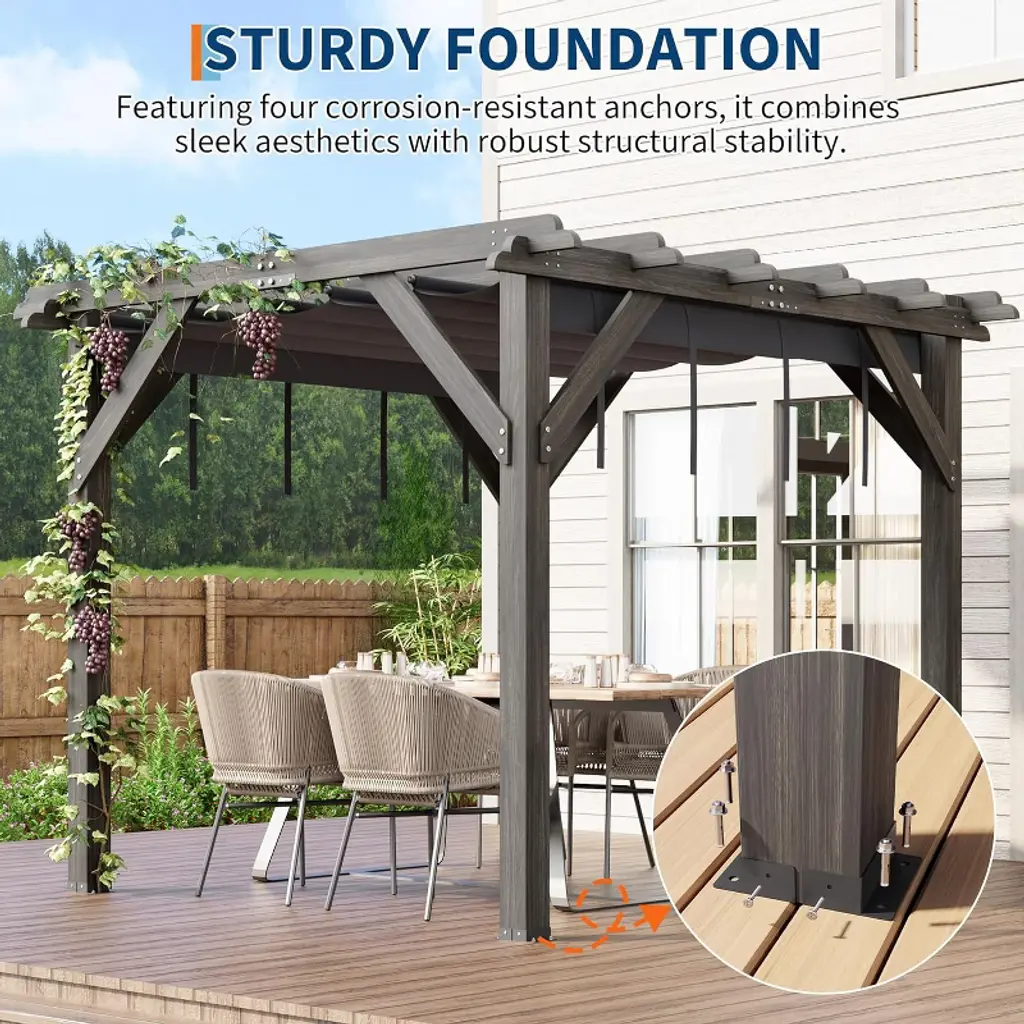 10x10 Ft Outdoor Spruce Wooden Gazebo Pergola with Canopy and Installation Kit, Premium Support Structure, Wind and Snow Resistant, Modern Outdoor Extendable Gazebo for Porches, Vines and Decks