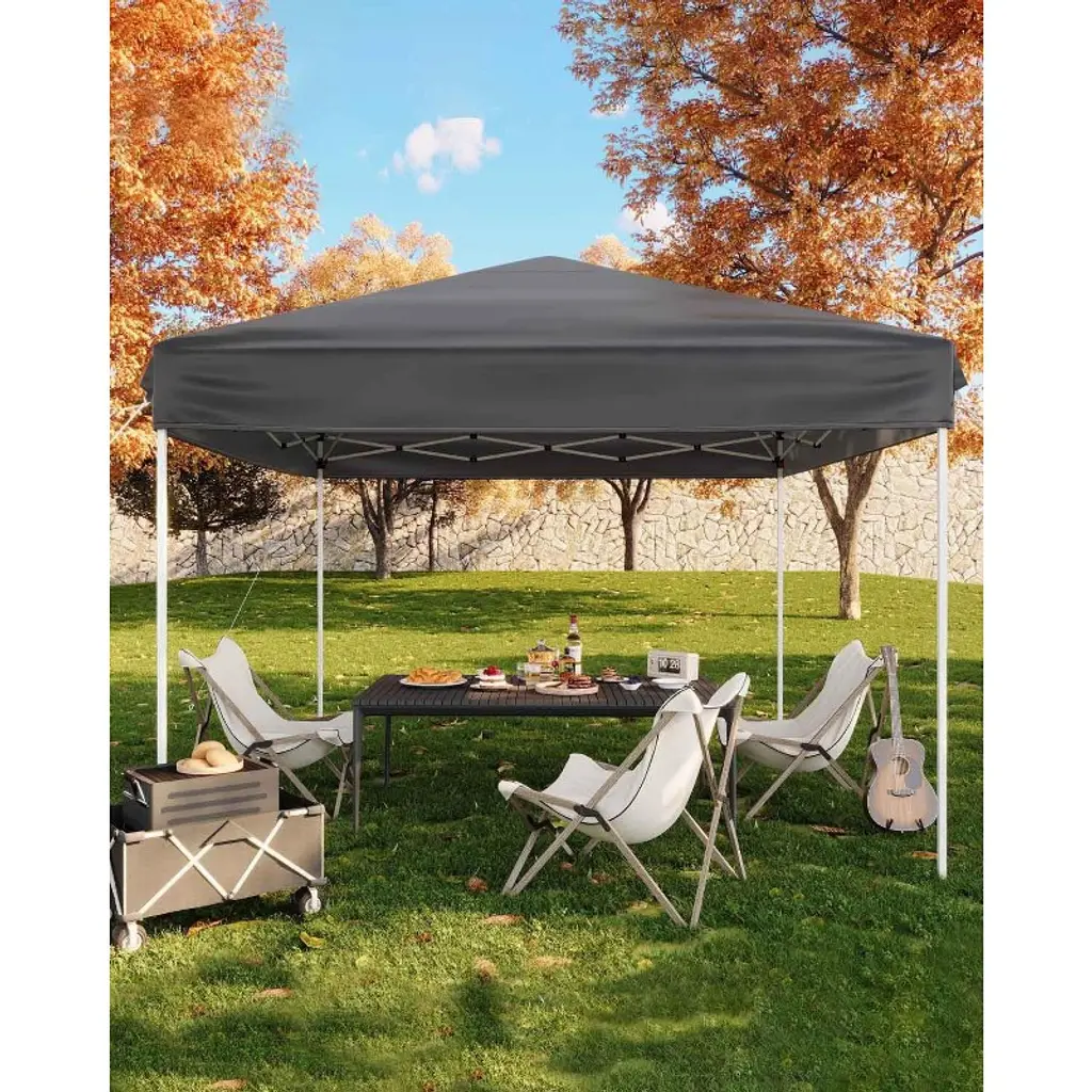 Product Description:Designed for professional outdoor use, this heavy-duty 100 sq.ft canopy tent features tool-free 2-minute setup and military-grade construction. The 210D Oxford fabric delivers UPF 50+ sun protection, while the powder-coated steel frame withstands challenging weather conditions. Includes complete anchoring system for maximum stability.Why Professionals Choose This Canopy:? Fastest commercial setup in its class? Heavy-duty materials for daily use? Complete anchoring system included? Compact wheeled storage solution