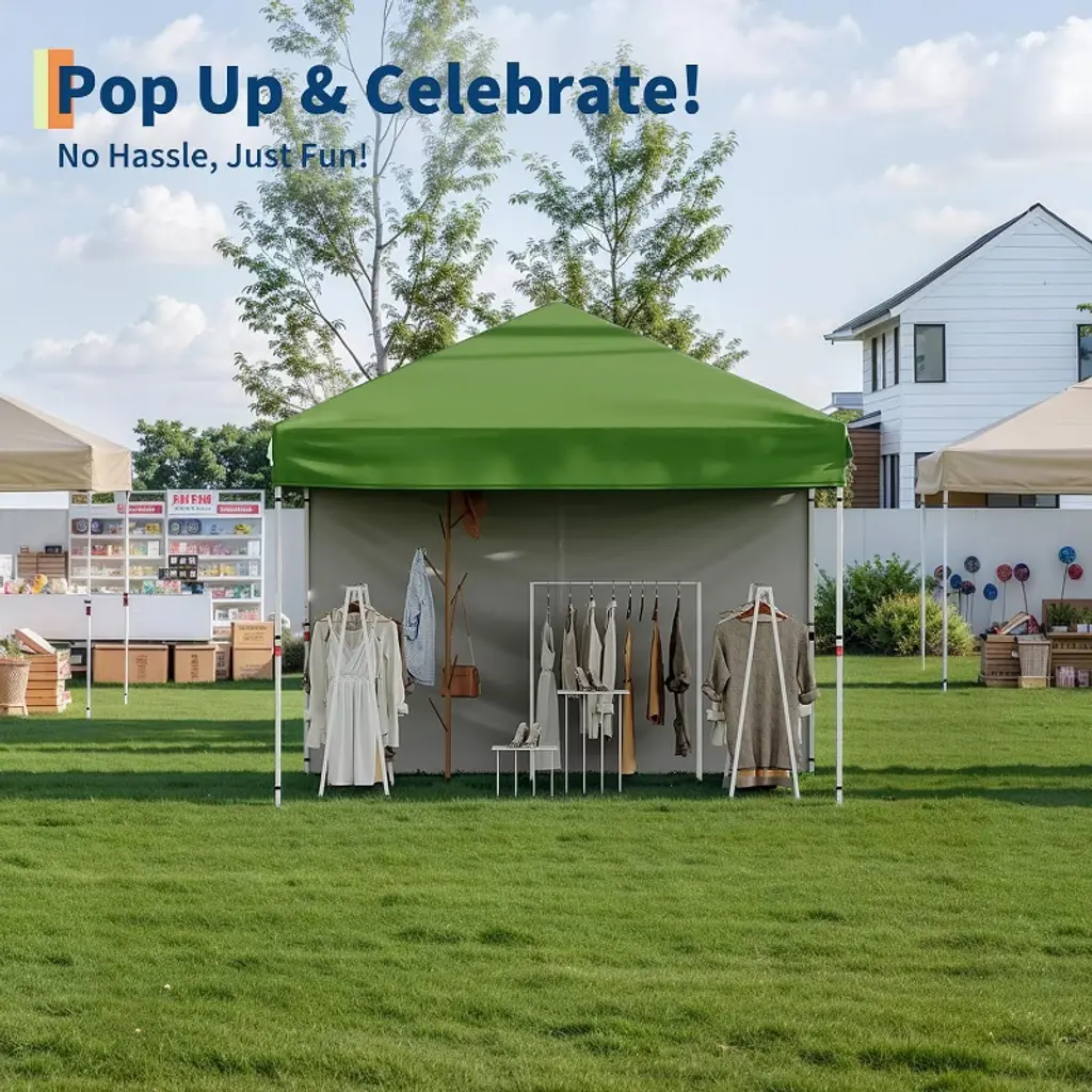 Picture this: It's market day and dark clouds roll in while other vendors scramble to cover their goods, but your display stays perfectly dry under the canopy that blocks both sun and rain. The commercial-grade steel frame stands firm when others wobble, keeping your merchandise safe throughout the storm. Meanwhile, your neighbor struggles with a flimsy tent that collapses in the wind again. This 10x10 ft pop-up canopy isn't just another outdoor accessory - it's the last shelter you'll ever need to buy. The military-grade Oxford fabric can handle years of weekend markets, backyard BBQs, and camping trips without fading or tearing. Set up takes 30 seconds (yes, we timed it), leaving more time to enjoy your event instead of wrestling with poles and instructions. From soccer moms needing shade at tournaments to small business owners selling at fall festivals, this canopy adapts to your life. The included sandbags and stakes keep it secure when weather turns bad, while the roomy interior comfortably fits tables, chairs, and equipment. That beach vacation? Now you've got instant shade by the shore. The farmers' market season? Your products stay protected in any weather. Five seasons later, when it still looks and performs like new, you'll understand why commercial vendors choose this canopy. The peace of mind knowing your family, guests, or merchandise are protected? That's the real value.