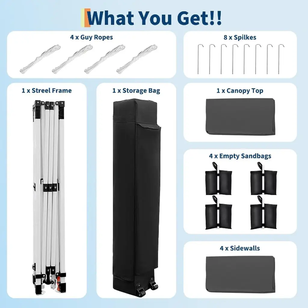 10'x10' Instant Pop Up Canopy With 4 Sidewalls, Heavy Duty Commercial Tent Includes Stakes/ropes/sandbags, Perfect For Outdoor Markets, Events