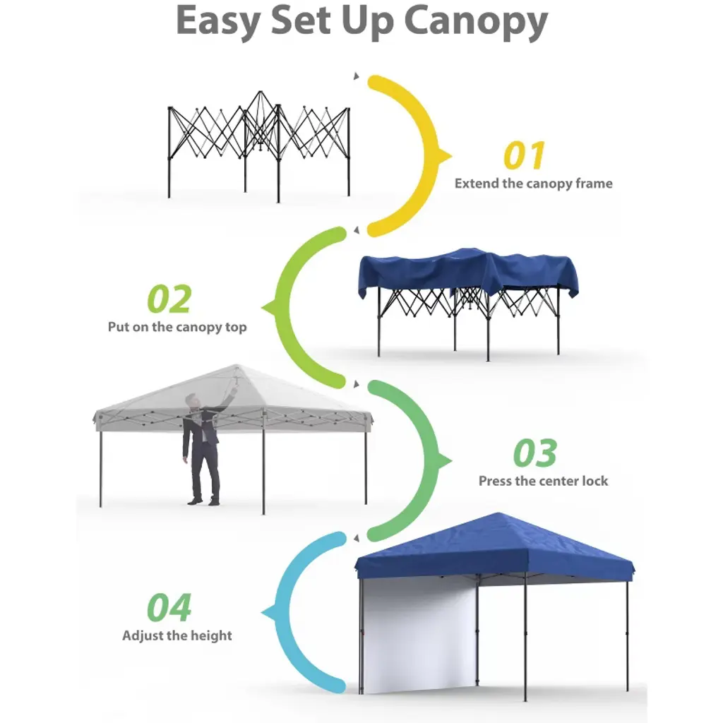10x10 Pop Up Canopy Tent Outdoor Canopy Heavy Duty Commercial Instant Tent Shelter with 1 Removable Sidewall, Designed with upgraded central lock system, simply press the central lock of the canopy tent to open or close it,and quickly complete the setup in a few seconds.