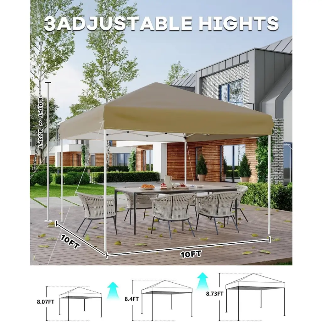 10x10 Pop Up Canopy Tent, Outdoor Tent With 3 Adjustable Height, Easy Set Up Canopy With 4 Sandbags & Carrying Bag For Camping