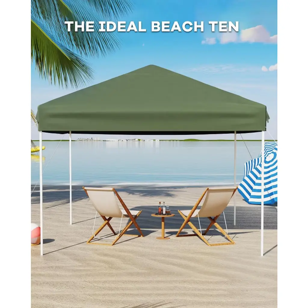 10x10 Pop Up Canopy Tent, Outdoor Tent With 3 Adjustable Height, Easy Set Up Canopy With 4 Sandbags & Carrying Bag ,Green