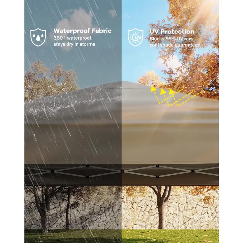 10x10 Pop Up Canopy Tent, Outdoor Tent With 3 Adjustable Height, Easy Set Up Canopy With 4 Sandbags & Carrying Bag ,Khaki