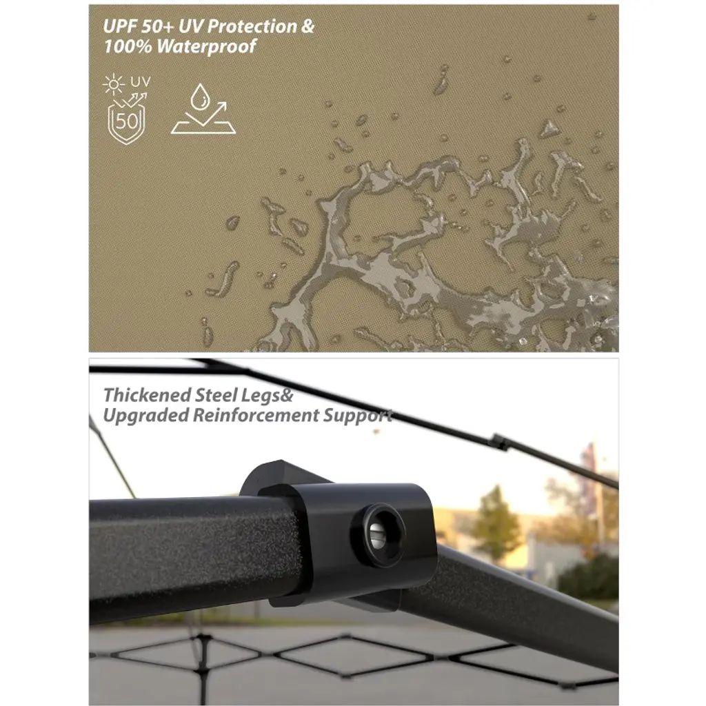 10x10 Pop Up Canopy Tent with 3 Sidewalls – Heavy Duty Commercial Canopy Instant Setup Waterproof UPF 50+ – Includes Carry Bag, Khaki