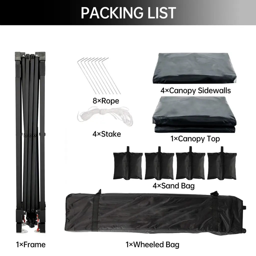 10'x10' Pop Up Canopy Tent with 4 Sidewalls, Waterproof and UV Resistant Outdoor Gazebo, Easy Up Sun Shade Shelter for Parties, Events, Backyard, Camping, Black