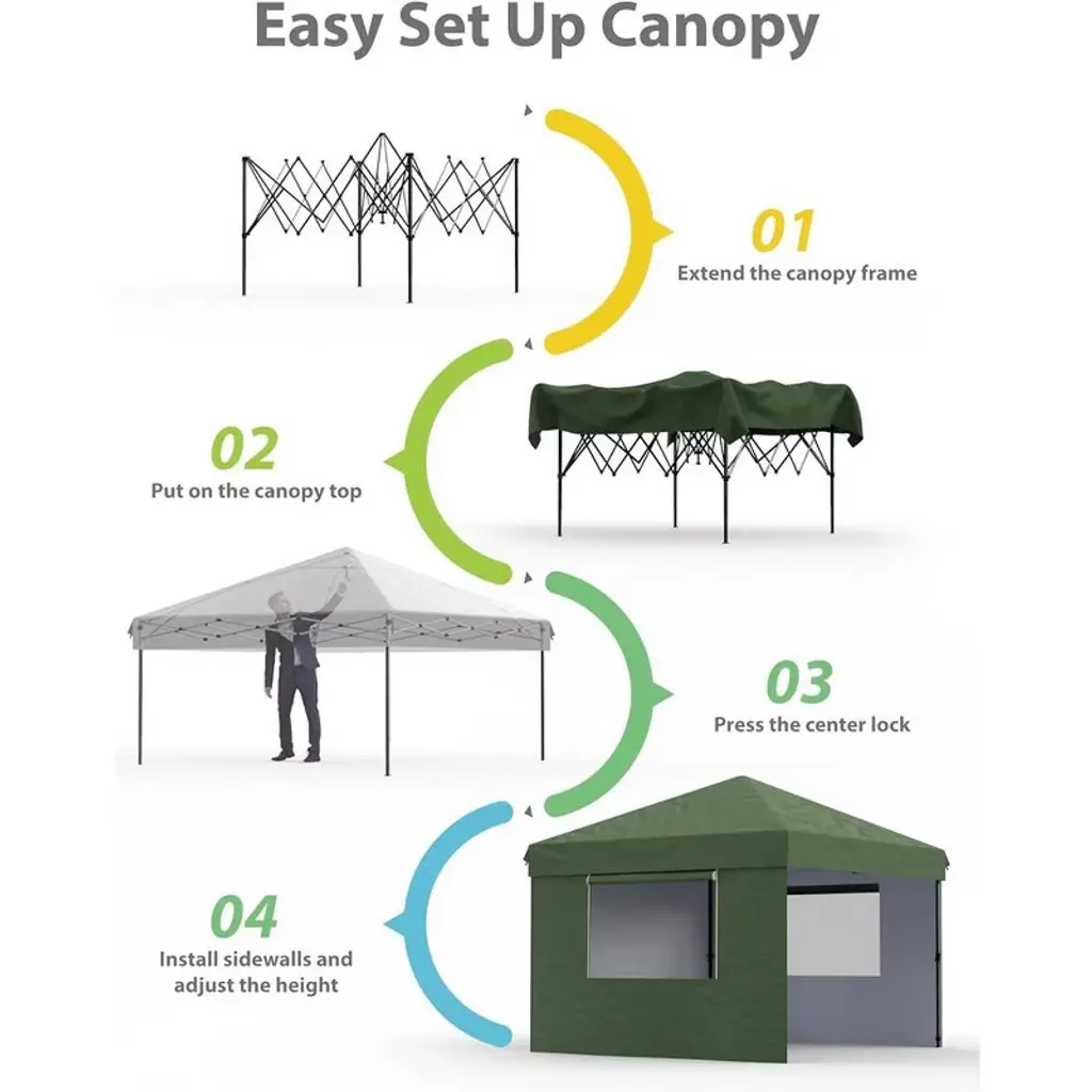 10'x10' Pop Up Canopy – Waterproof, Uv-resistant With Center Lock And 3 Sidewalls, Perfect For Picnics, Camping, Beach Tents, And Outdoor Gatherings