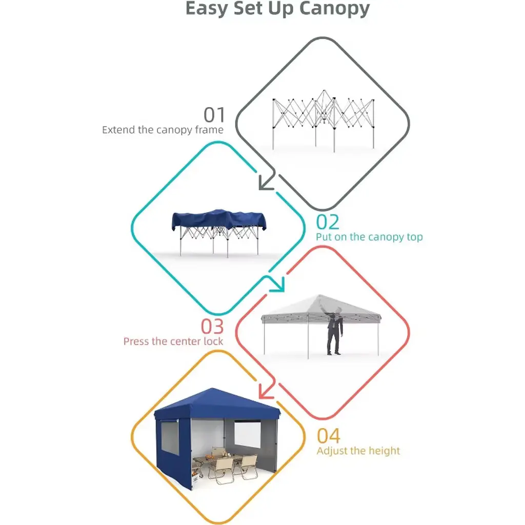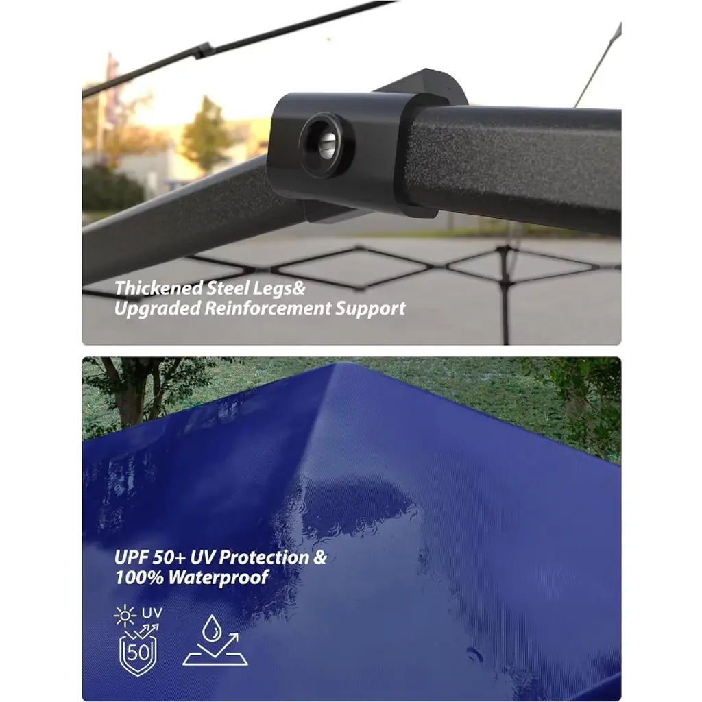 10x10 Pop Up Canopy with 3 Removable Sidewalls, Beach Tent - UV Protection, Outdoor Gazebo with 1-Button Push, Outdoor Sun Shade Events, Blue