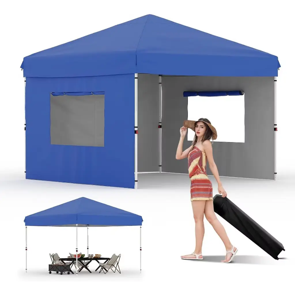10x10 Pop Up Canopy With 3 Sidewalls - Easy Up Camping Tent With One Button Push Setup For Deck, Garden, Sports, Beach, Party - Grey