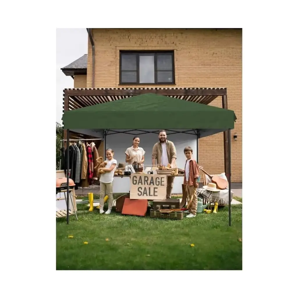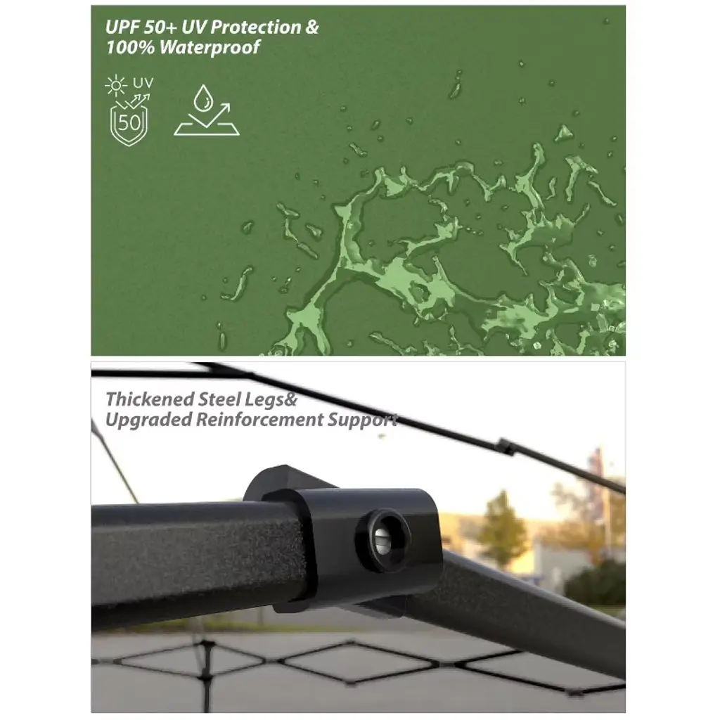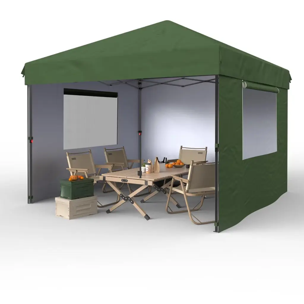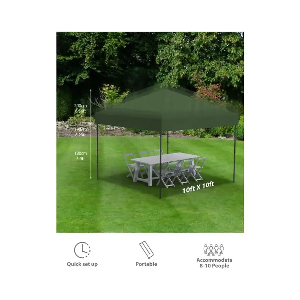 10x10 Pop Up Canopy With Removable 4 Sidewalls - Easy Up Camping Tent With One Button Push Setup For Deck, Garden, Sports, Beach, Party - Green