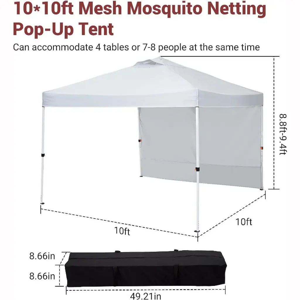 10x10 Pop Up Canopy With Side Wall, Beach Tent With One Push Setup, Waterproof Outdoor Beach Canopy, Sun Shelter Canopy With Wheeled Bag For Parties
