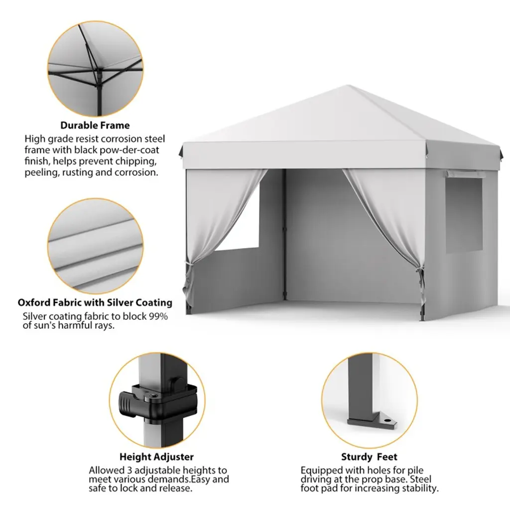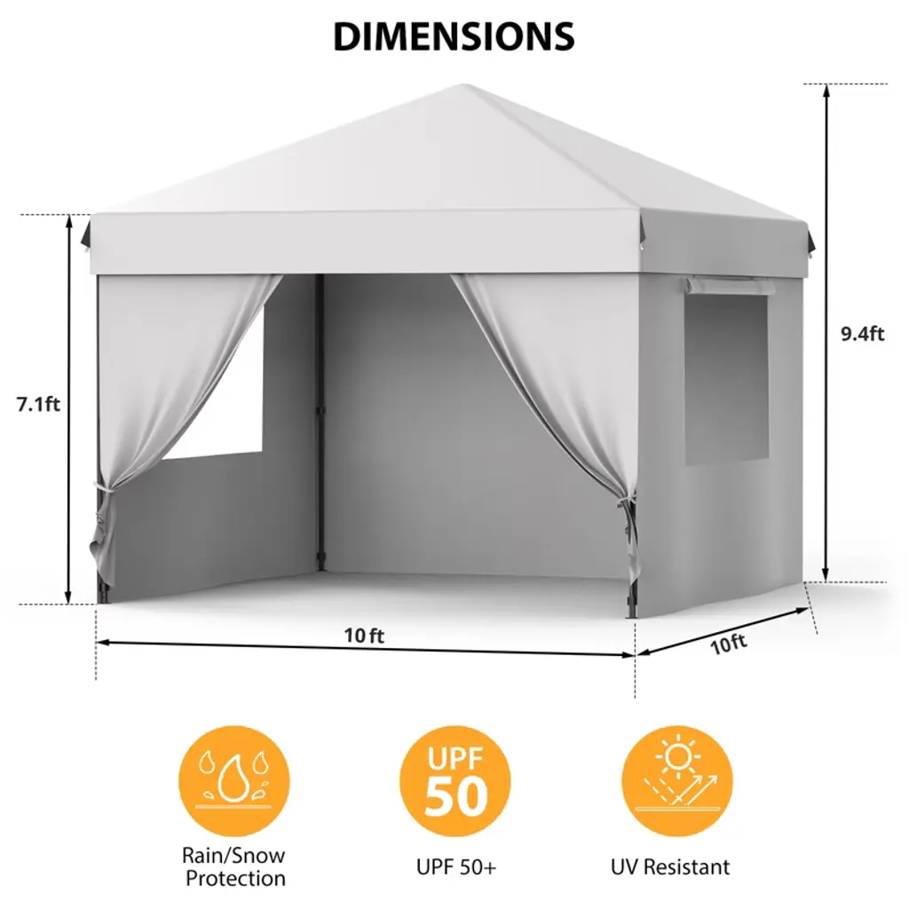 10x10ft Instant Pop Up Canopy Tent - Complete 4-wall Commercial Shelter For Outdoor Events