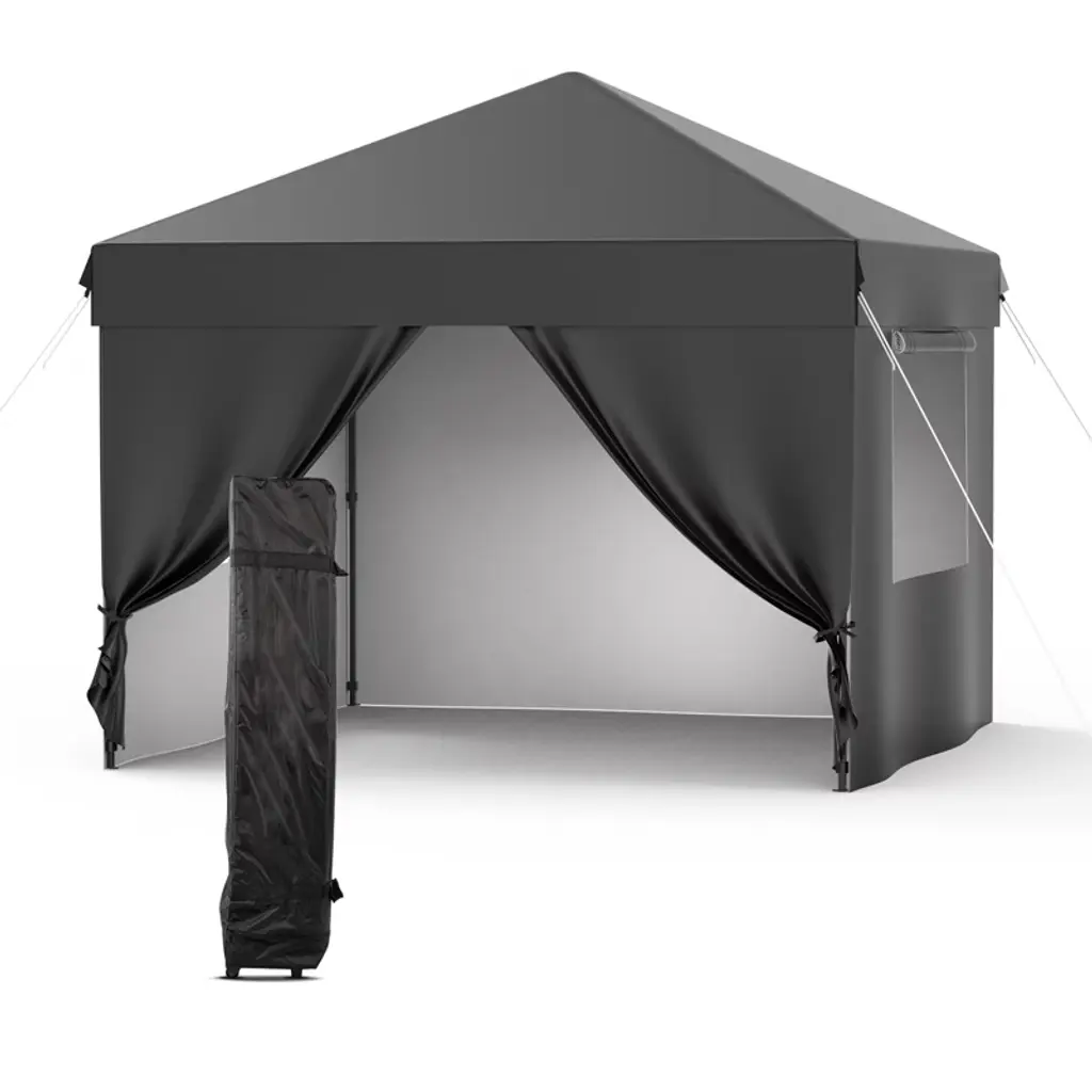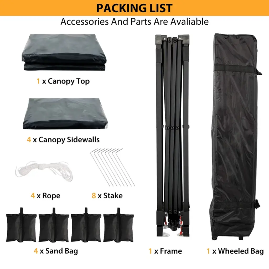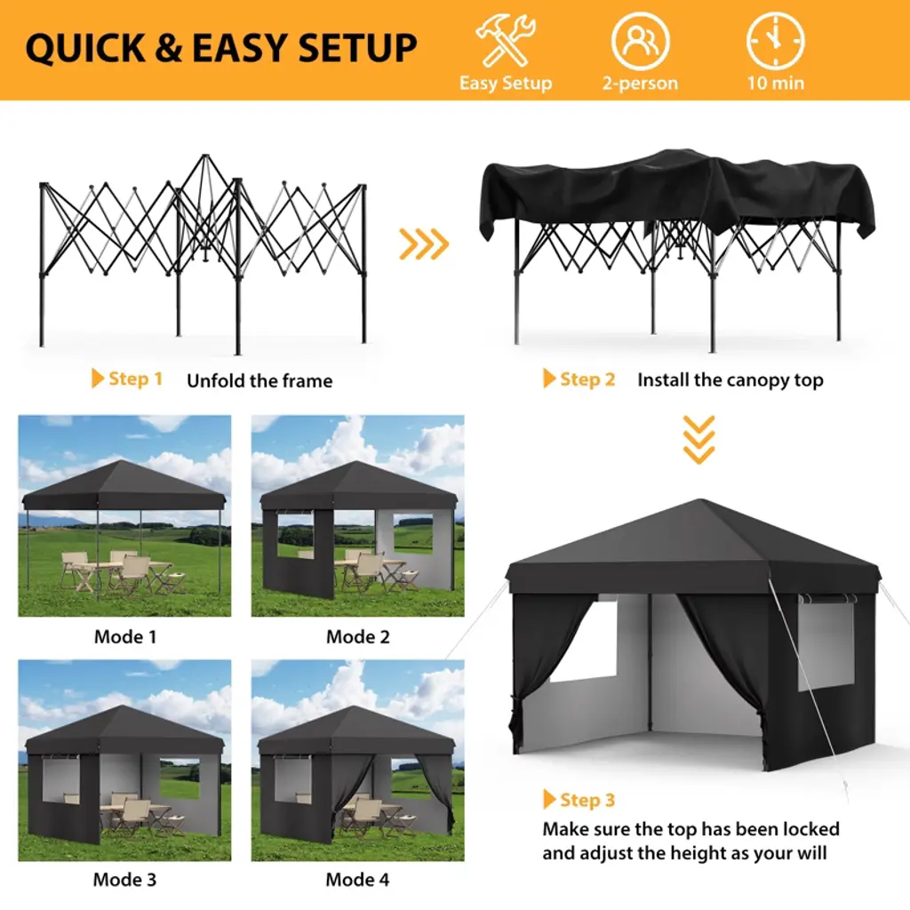 This professional-grade pop up canopy system creates an instant sheltered space for any outdoor occasion. The complete package includes four removable side walls for full protection from sun, wind, and light rain. Designed for quick deployment, the sturdy frame assembles in minutes while maintaining excellent stability. The durable materials withstand repeated use, making it ideal for markets, festivals, or backyard gatherings where reliable shelter is needed.