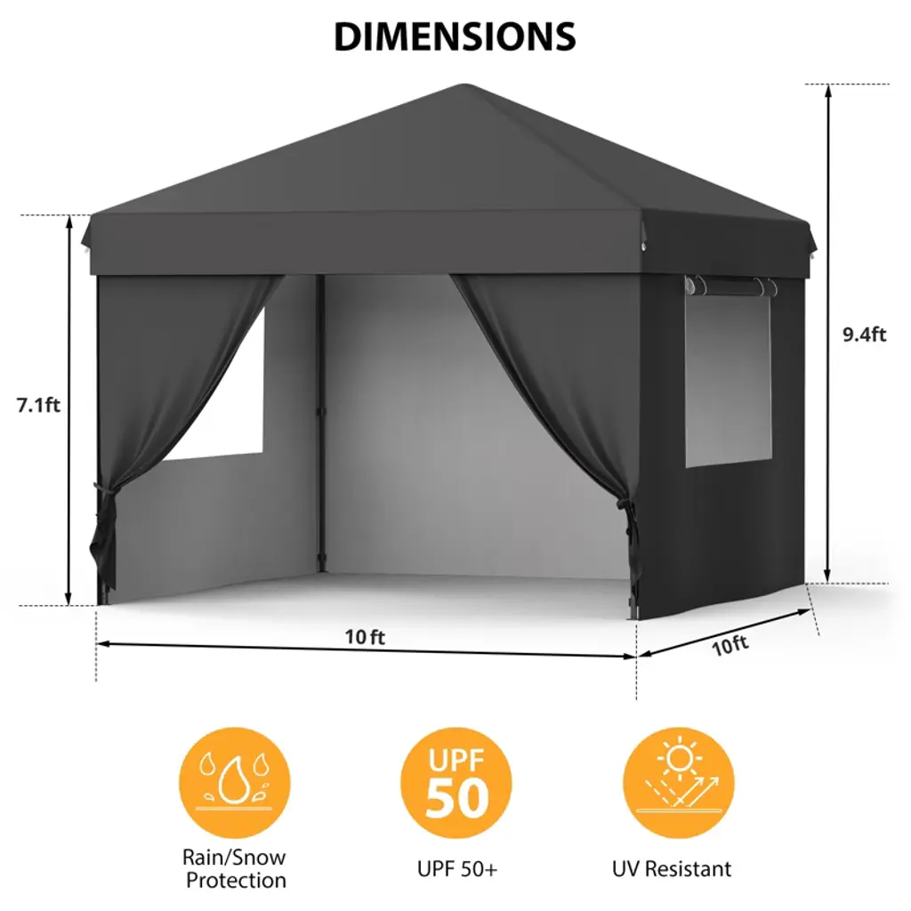 10x10ft Instant Pop Up Canopy Tent - Complete 4-wall Commercial Shelter For Outdoor Events