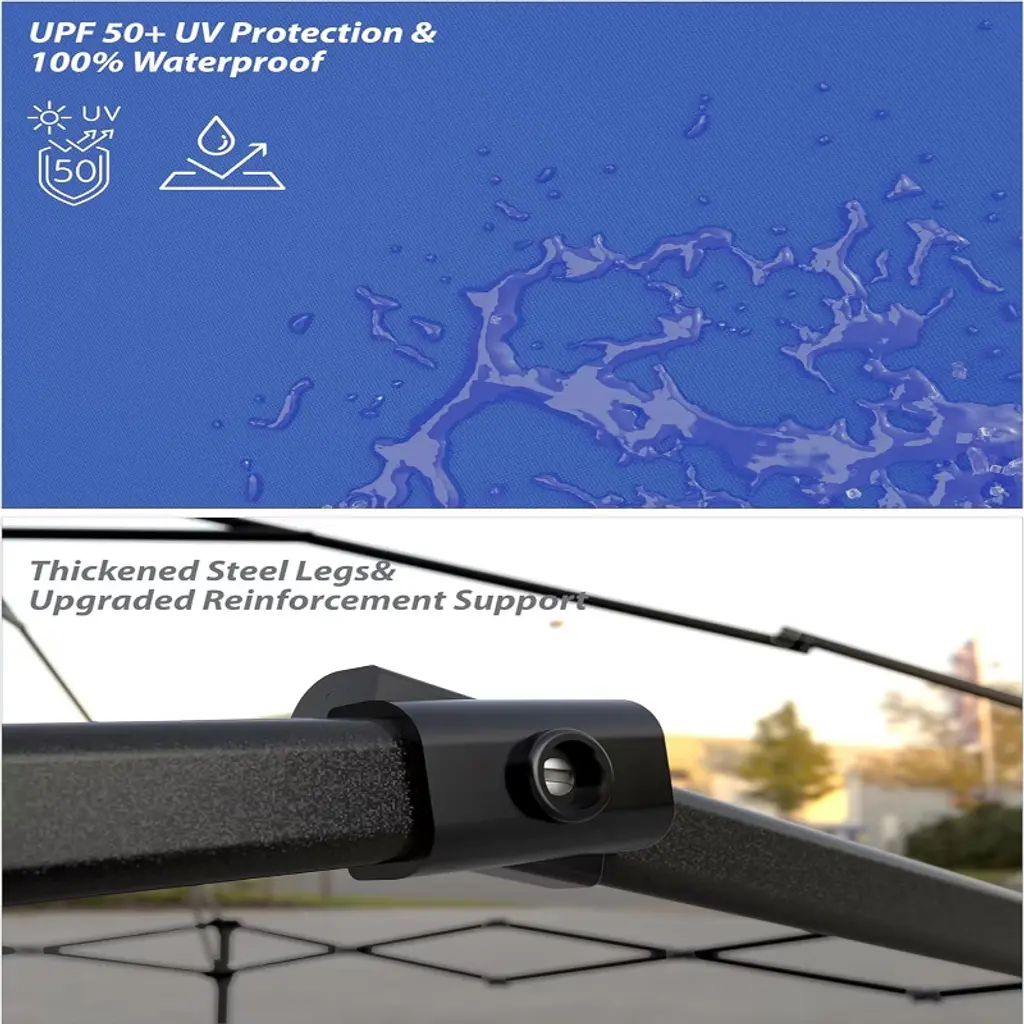 Premium Materials: Made from high-quality 210D Oxford fabric with UPF 50+ UV protection coating. Designed to withstand harsh weather conditions, it offers excellent waterproofing and UV protection. Featuring one sidewall, it provides extra coverage and privacy, ensuring a comfortable and safe outdoor experience whether under the blazing sun or sudden rain. Sturdy Stability: Featuring a specially upgraded thick steel leg design, it provides strong support and stability. Even in windy conditions, it remains steady, enhancing durability, strength, and weather resistance. Easy Installation: This VerisShade pop-up canopy includes a central locking system, making the setup process incredibly easy. In just a few minutes, you can unpack and set it up without any additional tools. The adjustable leg height allows for three different settings, enabling you to choose your desired height. Versatile Use: Our pop-up canopy is widely applicable for both commercial and recreational purposes. Whether you're hosting a family gathering, participating in a farmers' market, camping, or attending outdoor parties, it enhances the comfort of your outdoor space. Spacious Design: This 10'x10' outdoor pop-up canopy provides 100 square feet of shade, comfortably accommodating 8 to 10 people while protecting you from the sun and wind. Ideal for family gatherings, friend get-togethers, and outdoor activities, it offers ample space for everyone to enjoy conversations and fun.