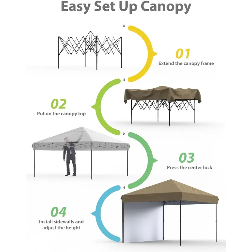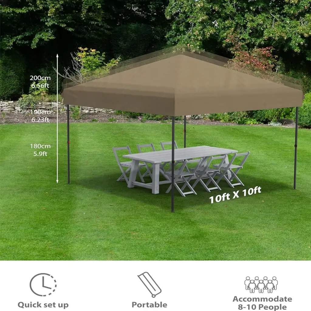 10'x10'pop Up Canopy Tent, Easy To Set Up And Take Down,1 Around Cloth,for Outdoor Events, Patio, Party, Camping, Khaki