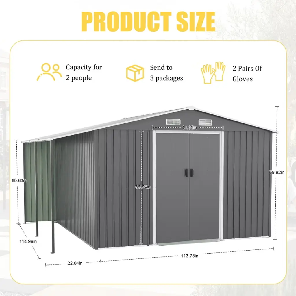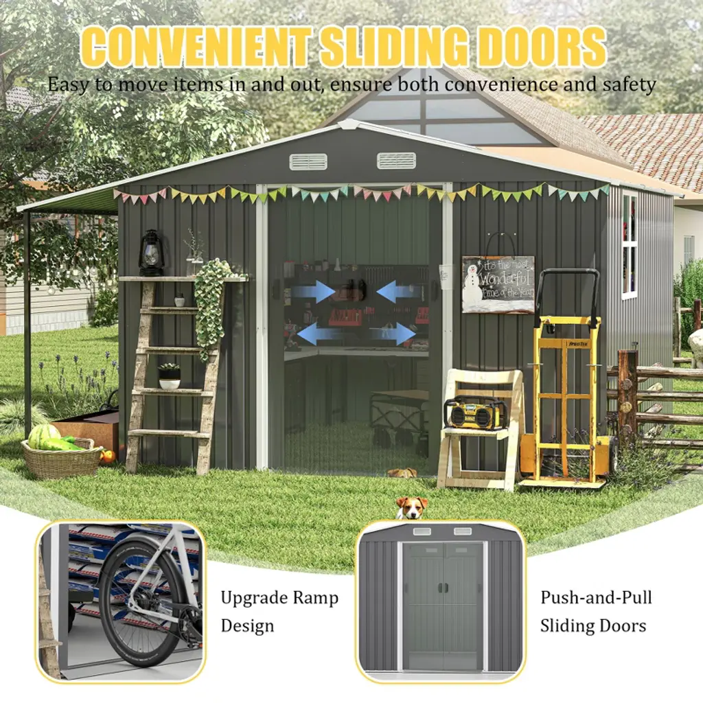 10x12ft Outdoor Storage Shed: Dual-zone Metal Garden Shed With Lockable Doors & Ventilation Gray