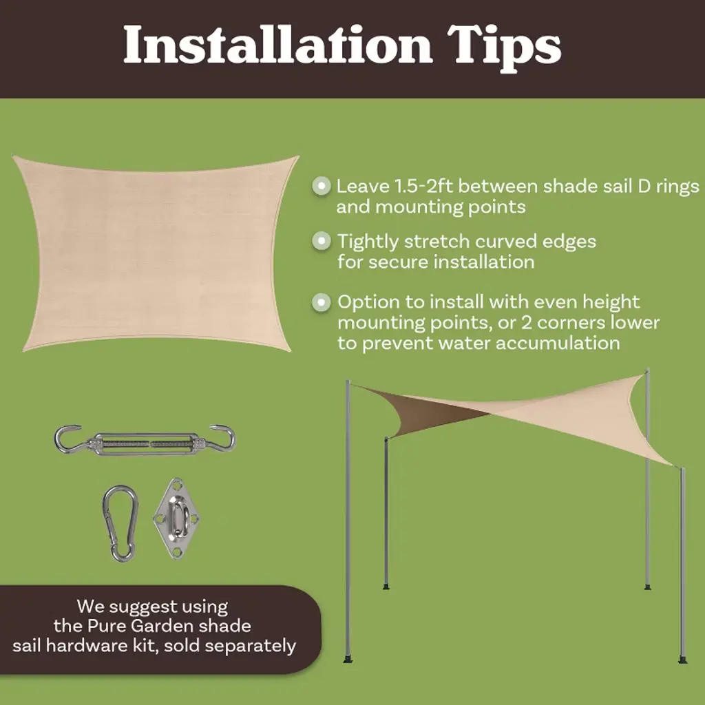 Easily add cool shade to any outdoor area with Shade Sails by Pure Garden. This 10 by 13-foot rectangular shade sail is made of tough 185 GSM high density polyethylene material that blocks harmful UV rays while allowing cooling breezes and rain to pass through. Use this shade cloth for patio spaces, decks, pools, backyards, or gardens, as well as for creating shade over BBQ areas, outdoor seating, or spots where outdoor activities occur. Pure Garden is your source for sun sail shades and other outdoor essentials designed to help you transform your space.