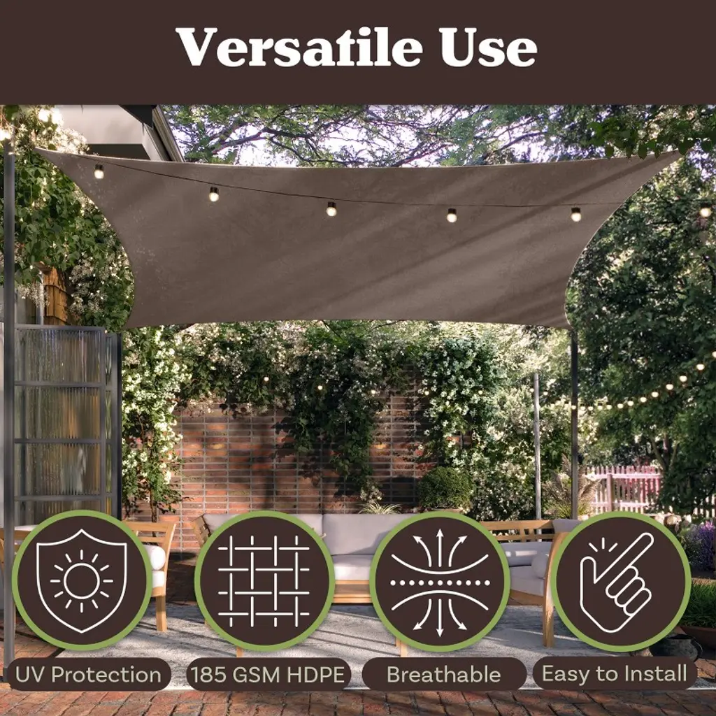 Easily add cool shade to any outdoor area with Shade Sails by Pure Garden. This 10 by 13-foot rectangular shade sail is made of tough 185 GSM high density polyethylene material that blocks harmful UV rays while allowing cooling breezes and rain to pass through. Use this shade cloth for patio spaces, decks, pools, backyards, or gardens, as well as for creating shade over BBQ areas, outdoor seating, or spots where outdoor activities occur. Pure Garden is your source for sun sail shades and other outdoor essentials designed to help you transform your space.