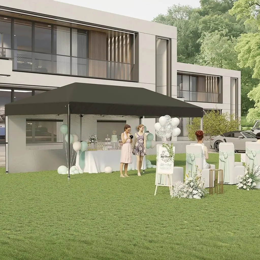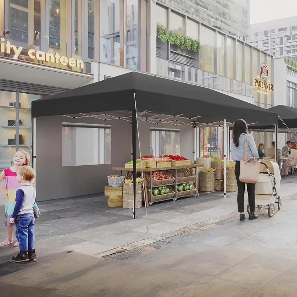 10'x 20' Pop up Canopy Tent, Instant Easy Setup Commercial Canopy Tent with 2Pcs Sidewalls, 12 Stakes & 6 Sandbags, Portable Outdoor Tent for Farmers' Market, Wedding, Patio, Party, Event