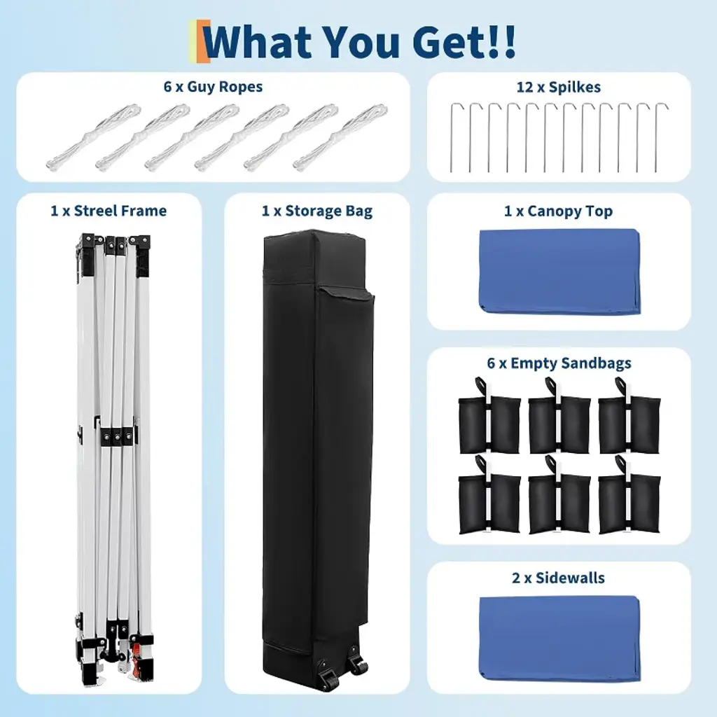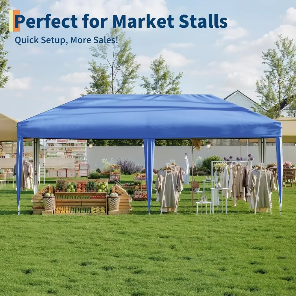 10'x 20' Pop up Canopy Tent, Instant Easy Setup Commercial Canopy Tent with 2Pcs Sidewalls, 12 Stakes & 6 Sandbags, Portable Outdoor Tent for Farmers' Market, Wedding, Patio, Party, Event