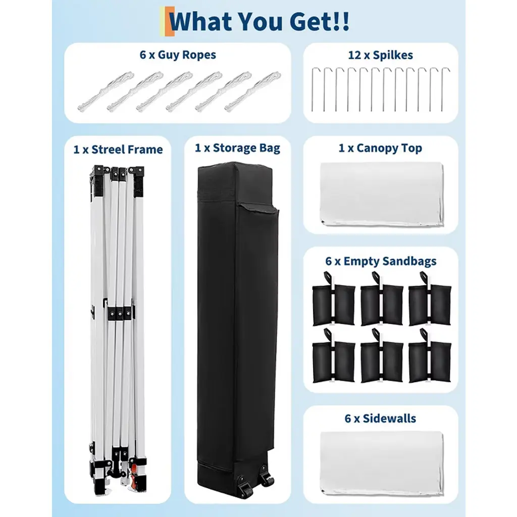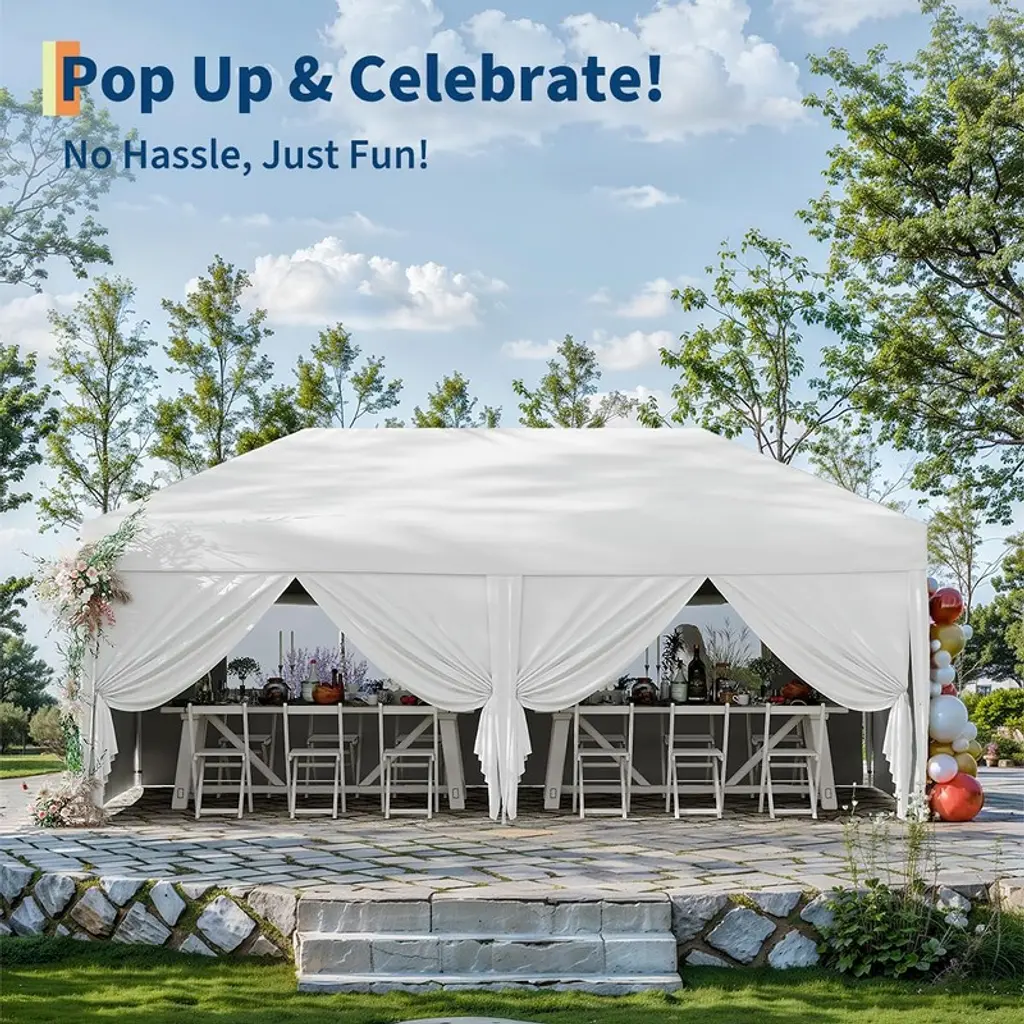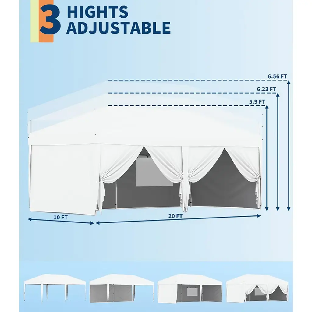 10x20 Ft Pop Up Canopy Tent Outdoor Canopy, Heavy Duty Instant Tent With 6 Removable Sidewalls