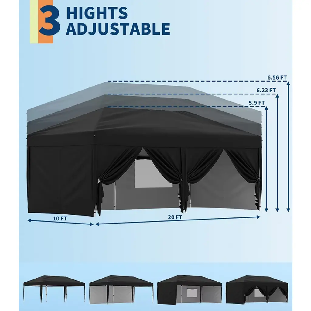 10x20 Ft Pop Up Canopy Tent Outdoor Canopy, Heavy Duty Instant Tent With 6 Removable Sidewalls