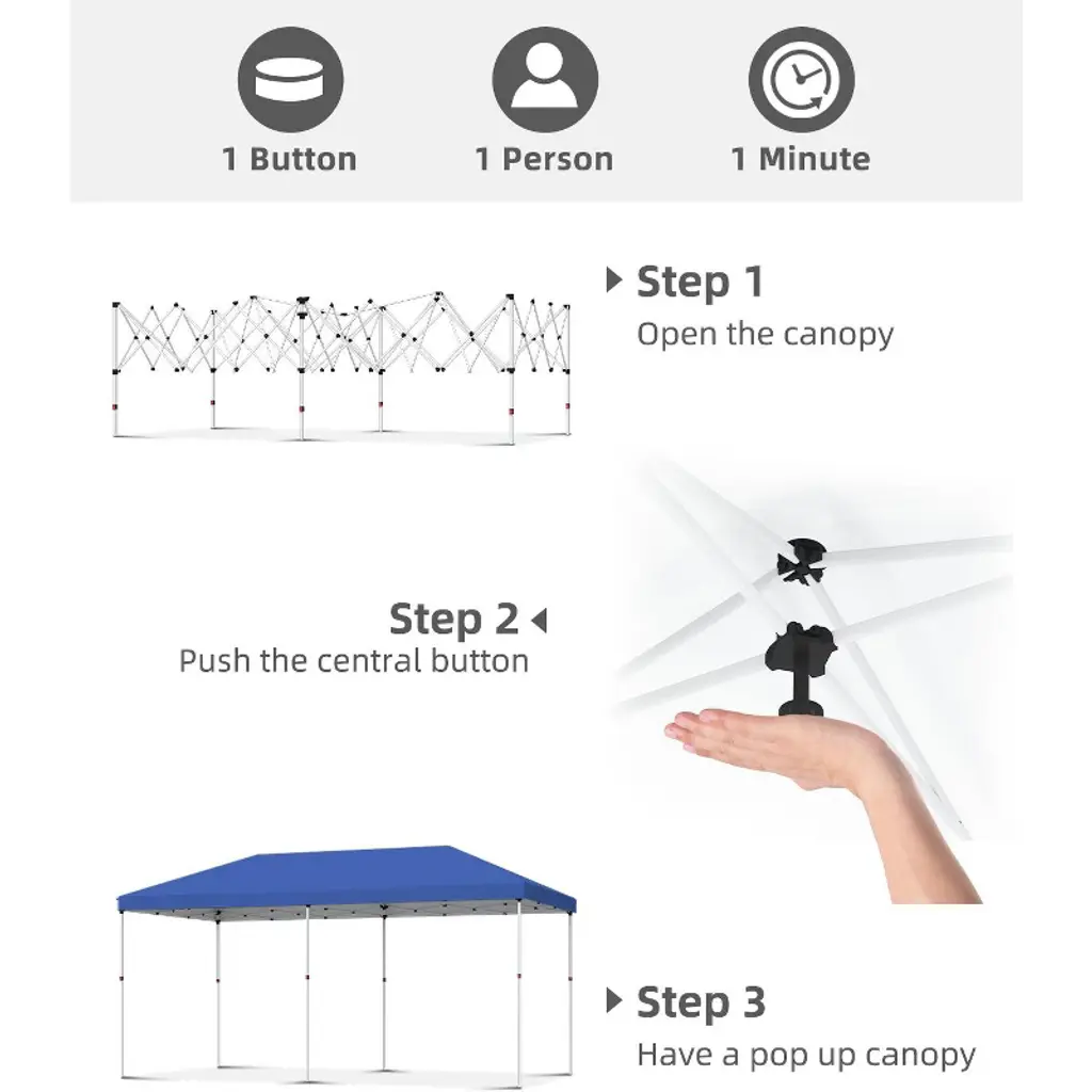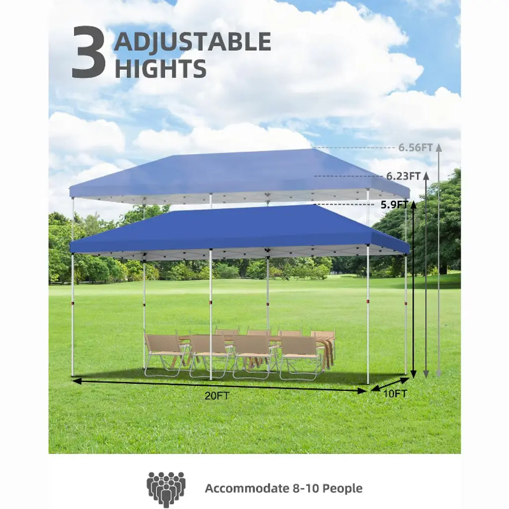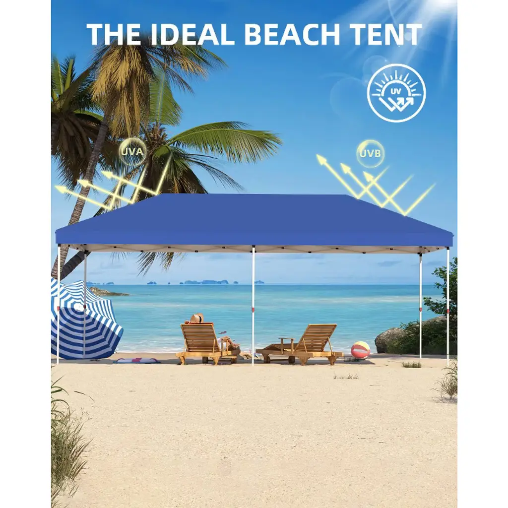 10x20 Pop Up Canopy - 1 Min Setup, 3 Height Adjustments W/sandbags, Uv Protection For Camping, Beach, Parties(blue)