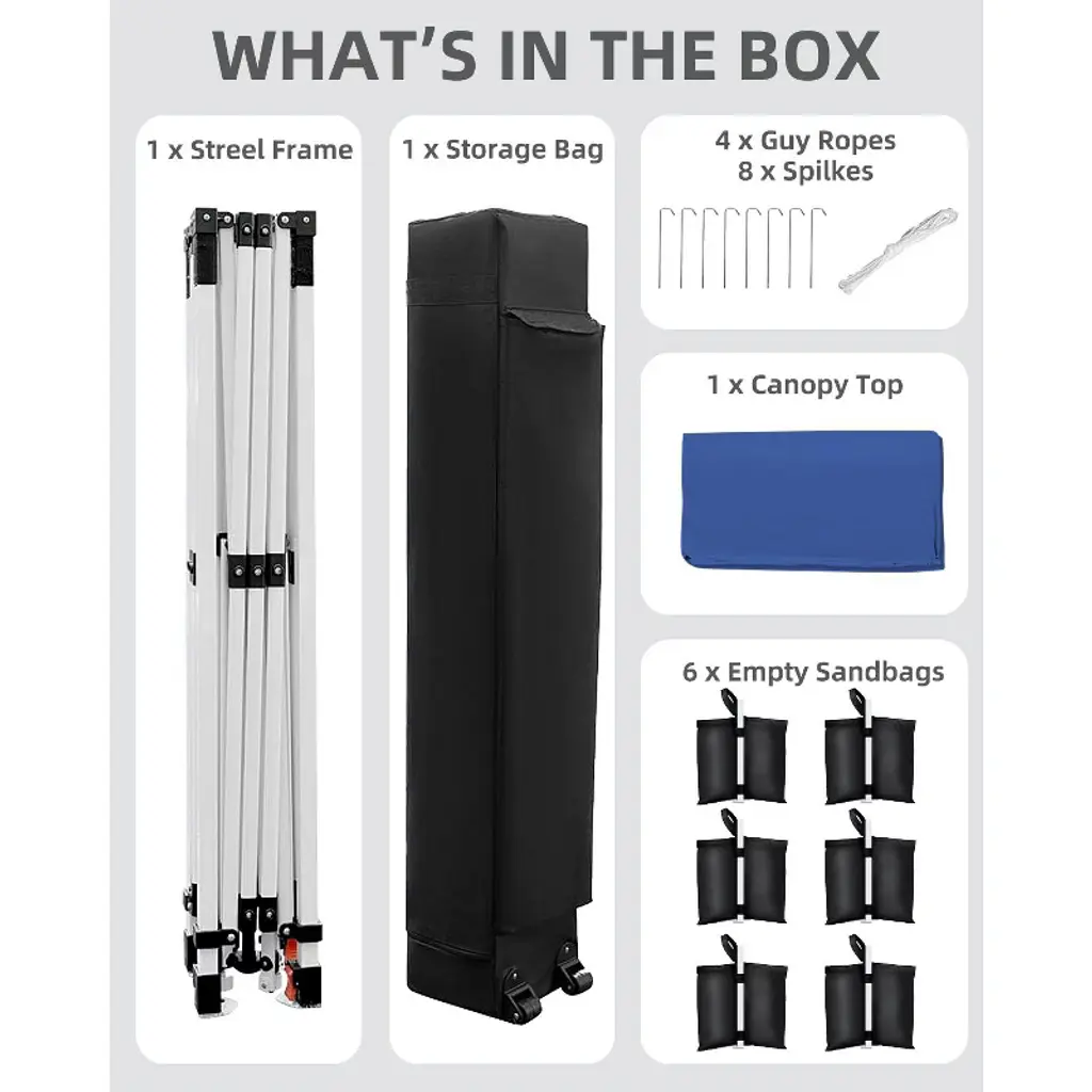 Effortless Setup and Takedown: Setting up or taking down this 10x20 ft pop-up canopy is a breeze! With no tools required, one or two people can have it ready in just minutes. Simply remove the fully assembled frame and top from the bag, pull it open, drape the fabric over the frame, extend the legs, and you’re all set for outdoor fun! Premium Quality for Lasting Durability: Built to withstand the elements, this canopy is crafted from 210D premium Oxford fabric and rust-resistant metal trusses. It offers exceptional durability and protects against 98% of harmful UV rays, ensuring you stay safe and comfortable under the sun. Easy Storage and Portability: Designed for convenience, this canopy comes with a spacious roller bag, making storage and transportation hassle-free. Its compact design saves space while keeping the canopy portable for all your outdoor adventures. Versatile and Adjustable for Any Occasion: The 10x20 ft canopy features adjustable side walls, allowing you to customize it for various scenarios. Whether you’re camping, hosting a barbecue, attending a trade show, or enjoying a picnic, this multifunctional canopy is perfect for a wide range of outdoor activities and events. Complete Package for Your Convenience: This canopy tent includes everything you need: 1 steel frame, 1 canopy top, 4 guy ropes, 6 empty sandbags, 8 spikes, and 1 newly-designed storage wheel bag. Exceptional After-Sales Support: If this 10x20 ft pop-up canopy doesn’t meet your expectations, our dedicated customer service team is here to help. We’re committed to resolving any issues and answering your questions to ensure your complete satisfaction. Upgrade your outdoor experience with this durable, easy-to-use, and versatile pop-up canopy—your ultimate companion for shade and protection!