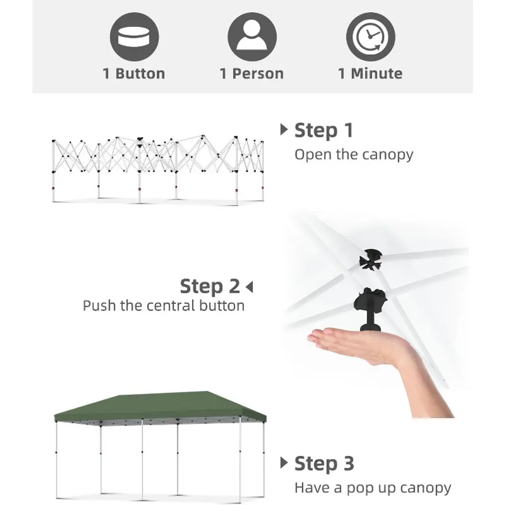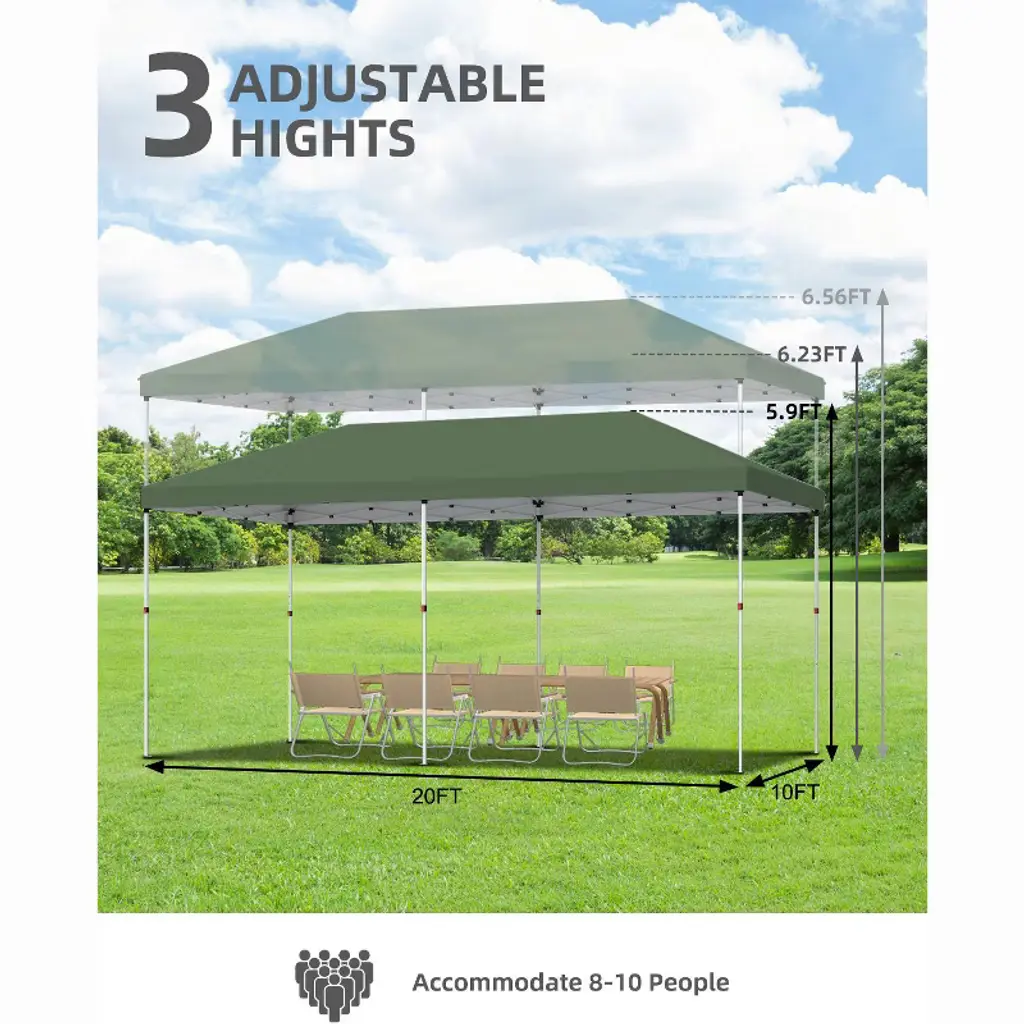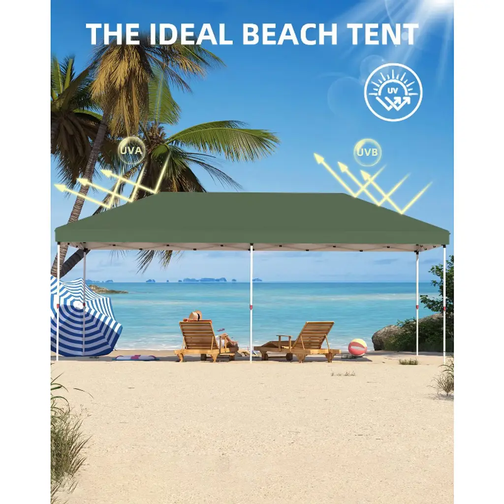 10x20 Pop Up Canopy - 1 Min Setup, 3 Height Adjustments W/sandbags, Uv Protection For Camping, Beach, Parties(green)