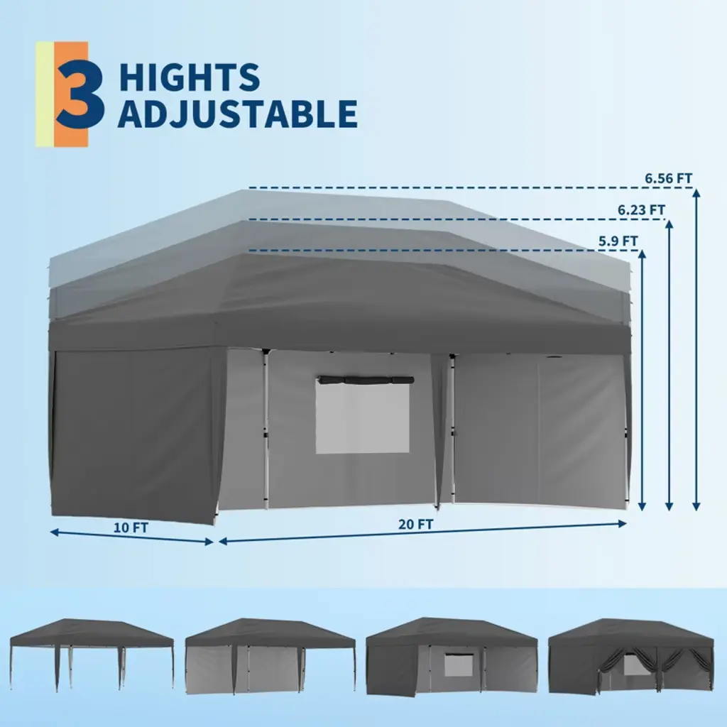 10x20 Pop-up Canopy Tent With 4 Sidewalls ̈C Heavy Duty Waterproof Outdoor Canopy With Upf 50+ Sun Protection, 8 Stakes & 6 Sandbags, Grey