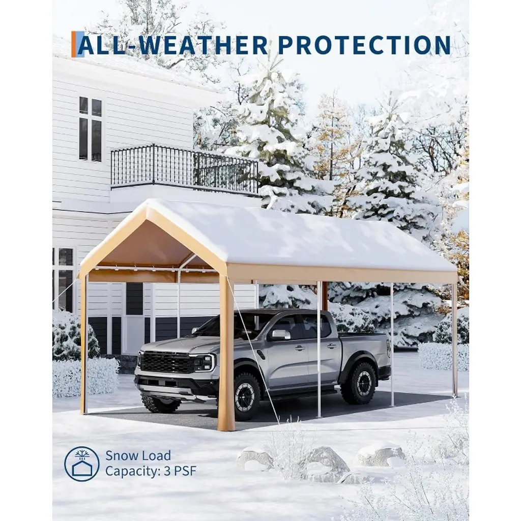 10x20ft Heavy-duty Carport Canopy – Galvanized Steel Frame, Waterproof & Uv-resistant (White/grey/yellow)