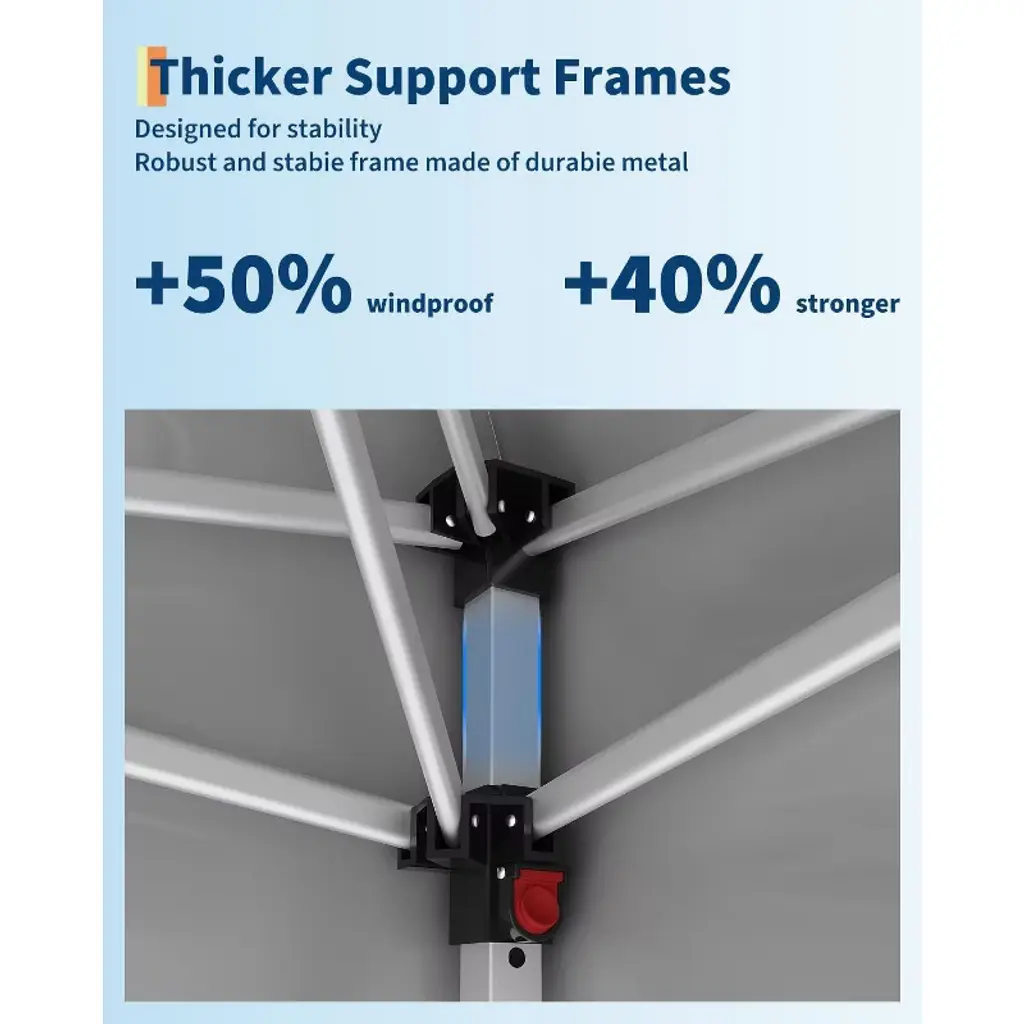 Featuring an upgraded central lock system, this canopy tent opens and closes effortlessly with a single press. No tools are needed, and the legs offer three height adjustments to suit various occasions.