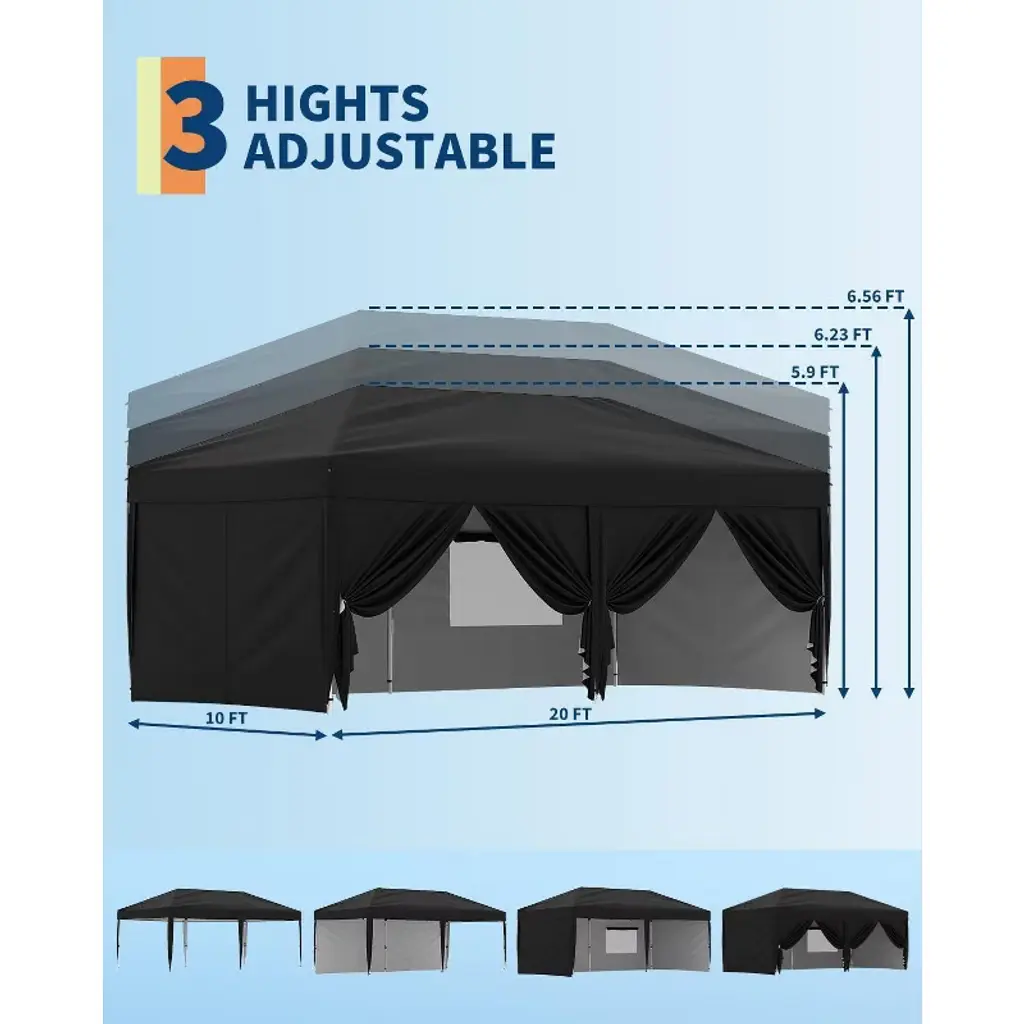 10x20ft Pop Up Canopy Tent, Folding Tent Shelter With 6 Removable Sidewalls, Easy Setup Outdoor Canopy, Height Adjustable Shelter Gazebos, Black