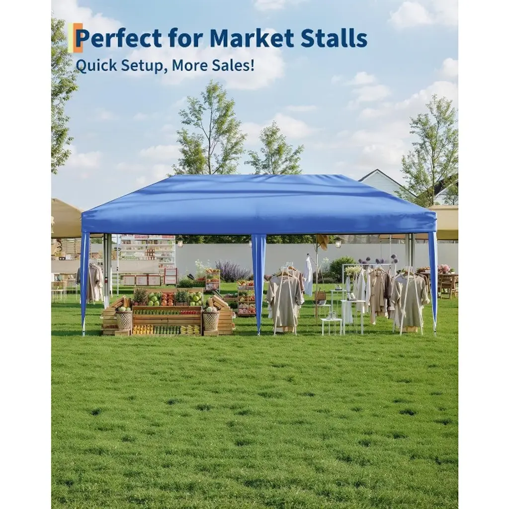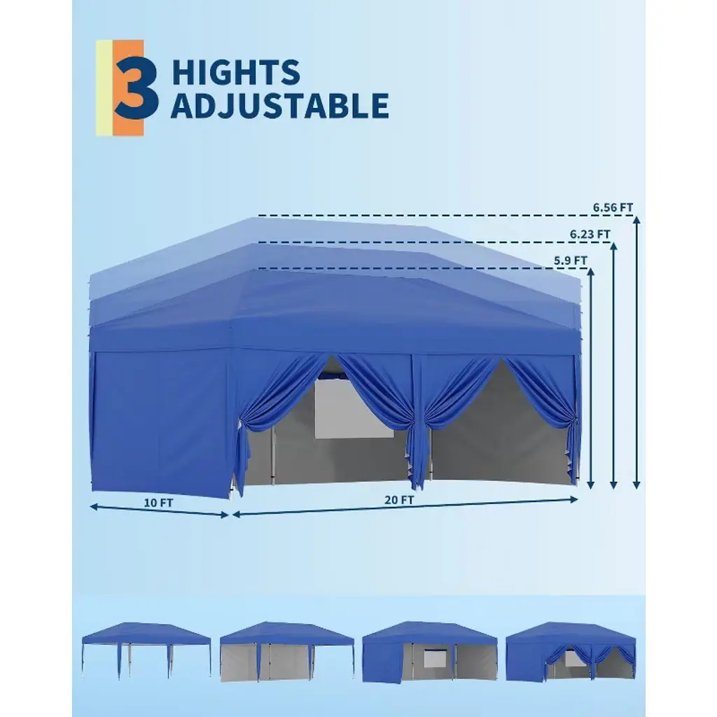 10x20ft Pop Up Canopy Tent, Folding Tent Shelter With 6 Removable Sidewalls, Easy Setup Outdoor Canopy, Height Adjustable Shelter Gazebos, Blue