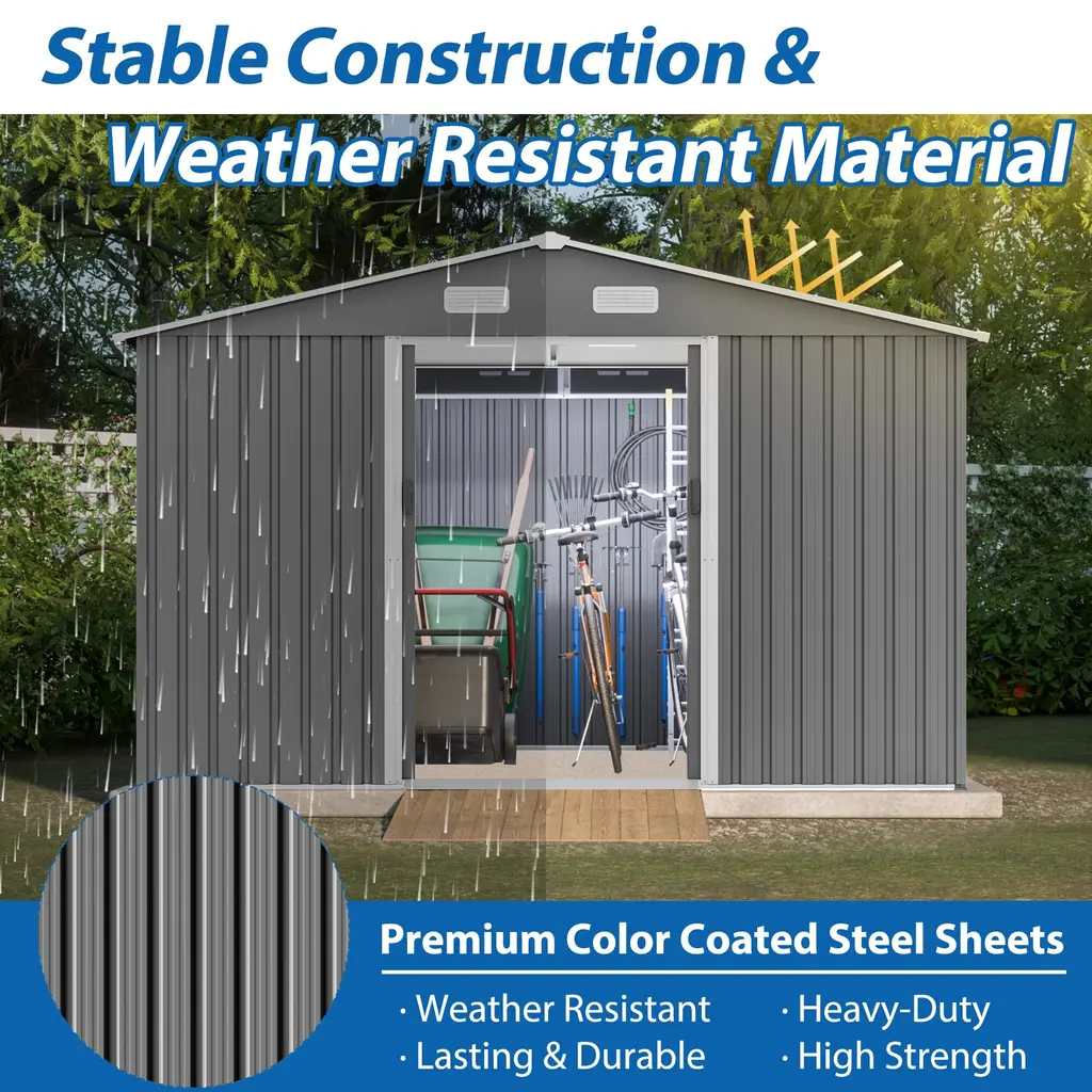 10x8 Ft Outdoor Storage Shed, Metal Foundation & Lockable Doors, Tool Shed For Garden, Patio, Backyard, Lawn, Grey - 灰色的